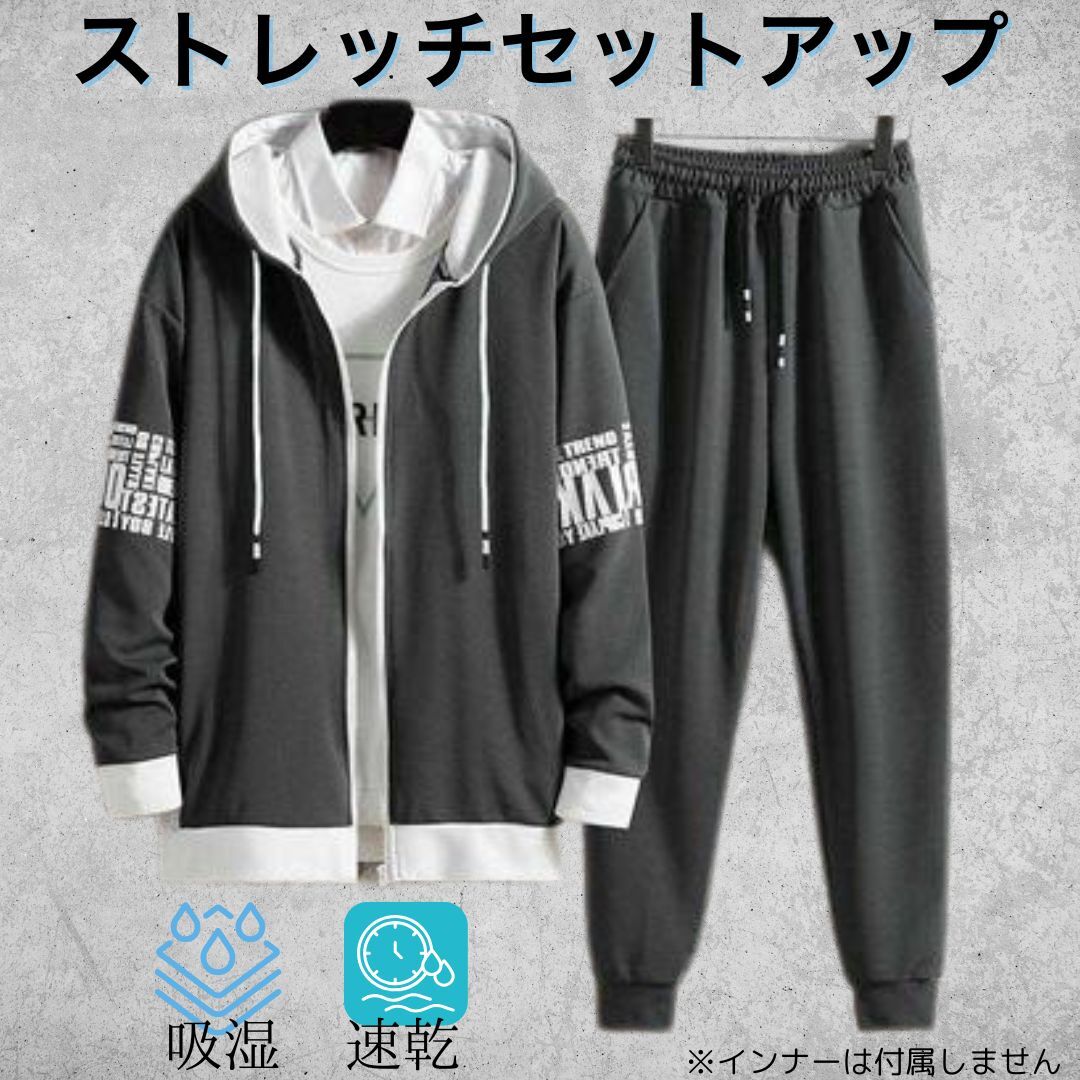 メンズ ストレッチセットアップ ジャージ 上下 ルームウェア パジャマ 部屋着 ウォーキング 散歩 スポーツ 速乾 グレー XL