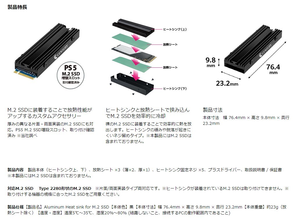 ★センチュリー M.2 SSD専用ヒートシンク