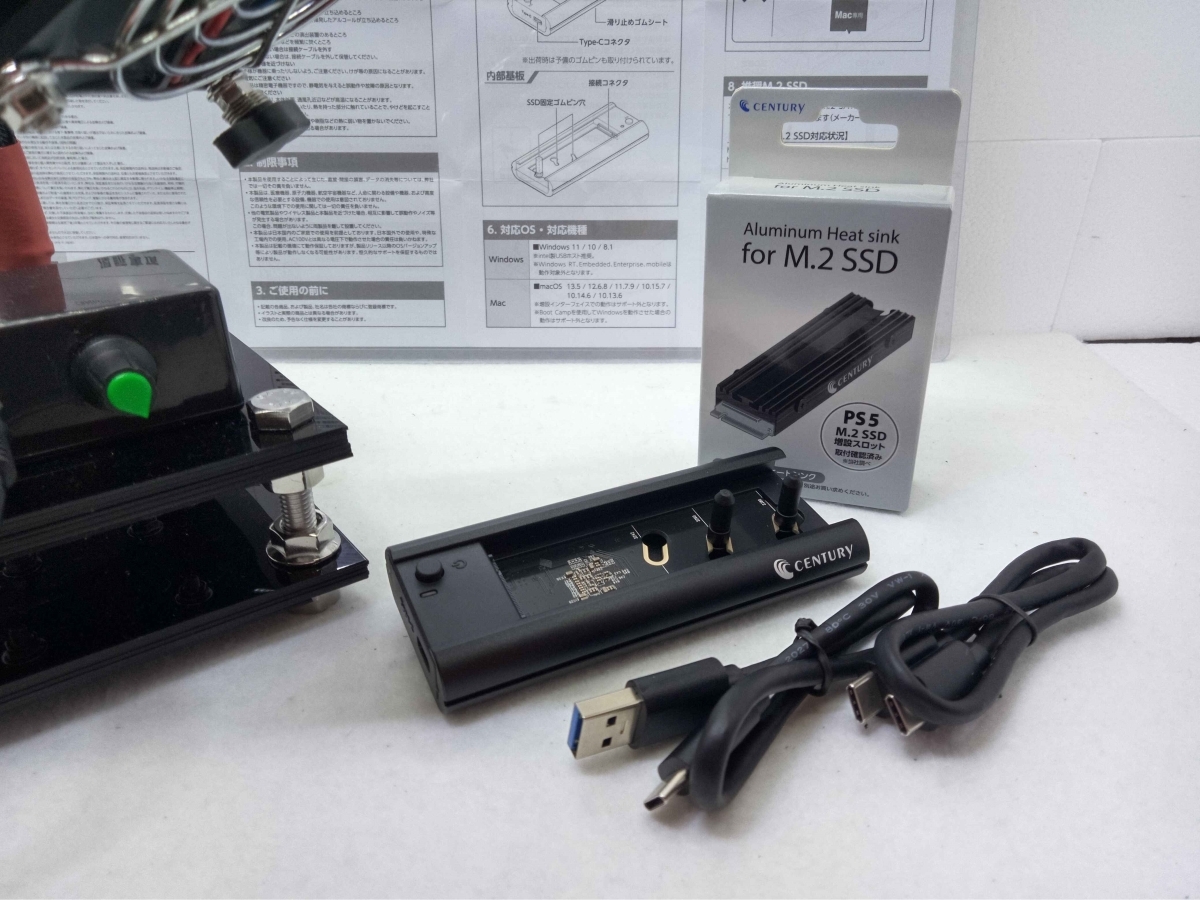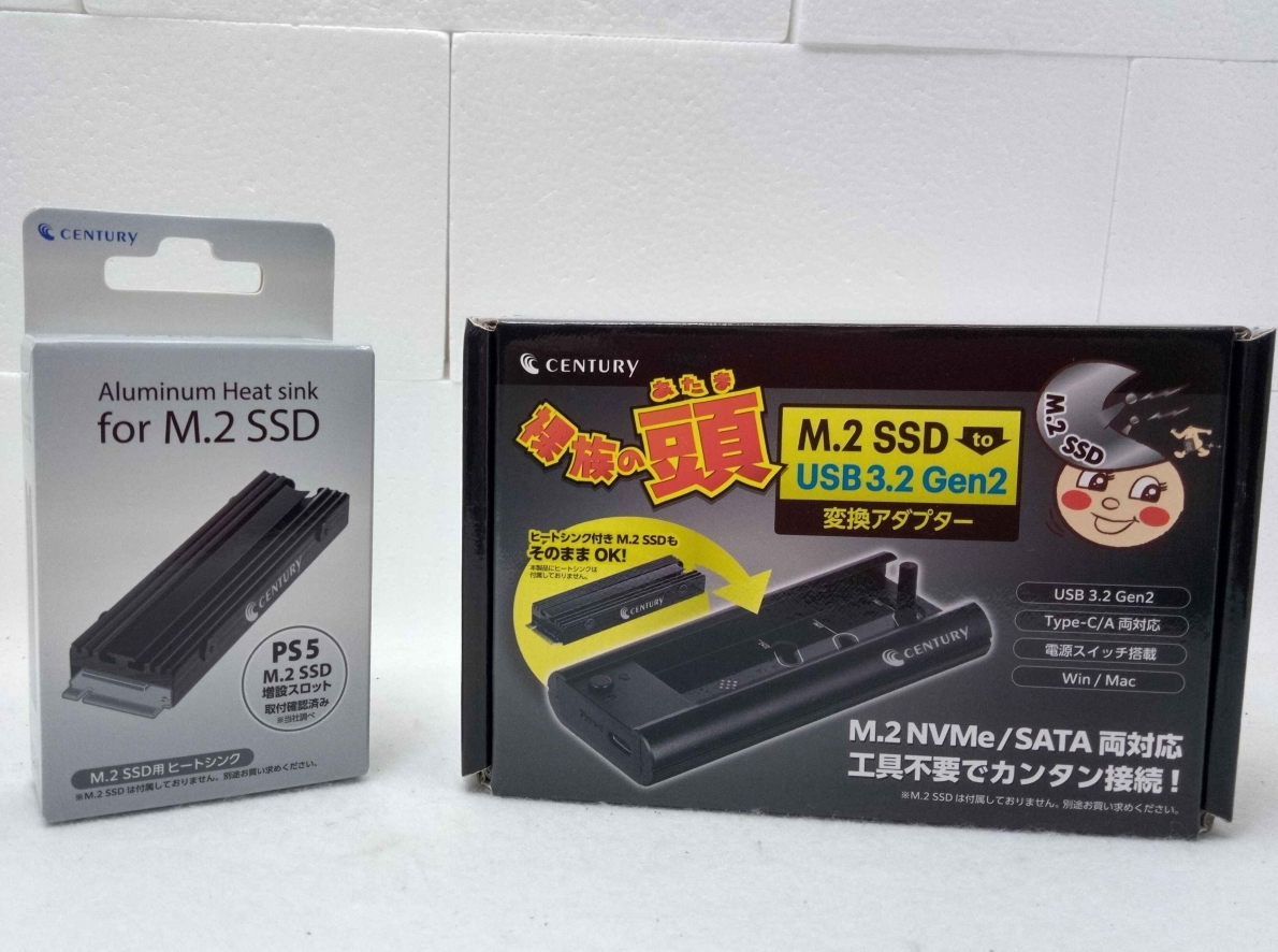 センチュリー_M.2 SSD 搭載可能 SATA / NVMe両対応アダプタ_&_M.2 SSD専用ヒートシンク_2点セット