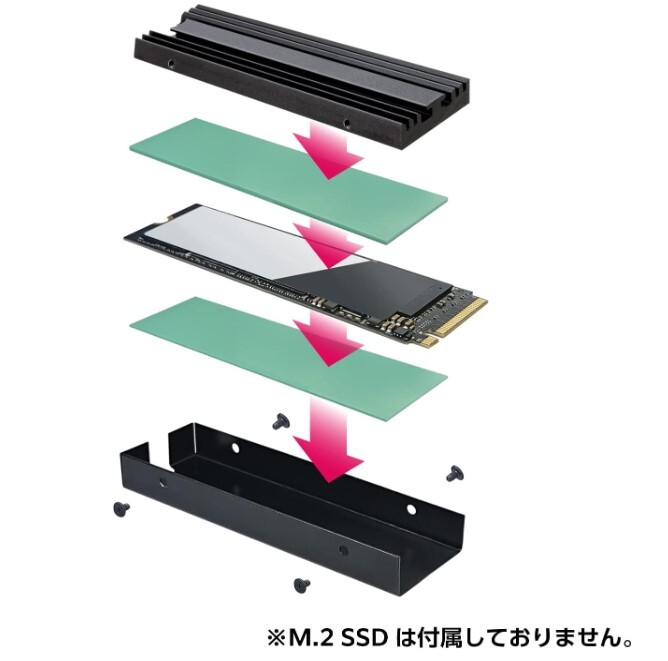 ・ヒートシンクと放熱シートで挟み込んでM.2 SSDを効率的に冷却