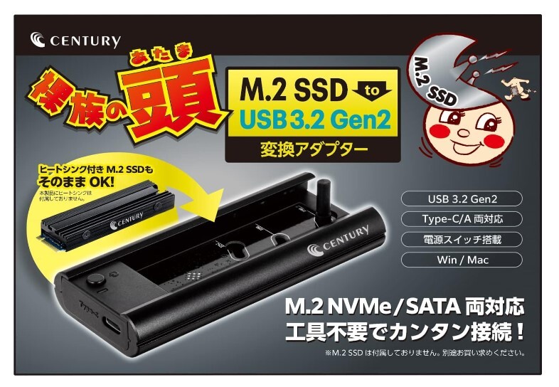 センチュリー_M.2 SSD 搭載可能 SATA / NVMe両対応アダプター
