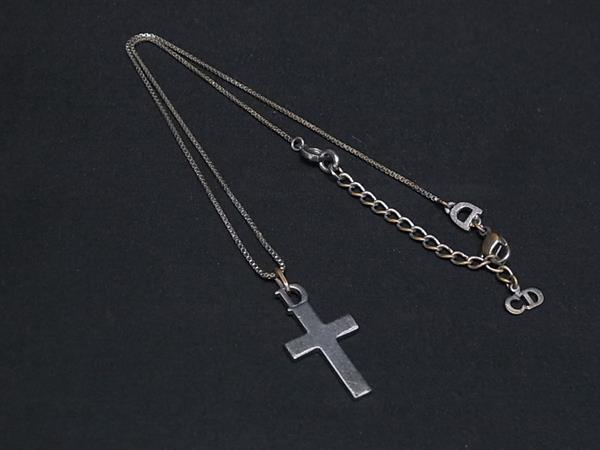 1円 ChristianDior クリスチャンディオール クロス 十字架 ネックレス ペンダント アクセサリー レディース シルバー系 GA5021
