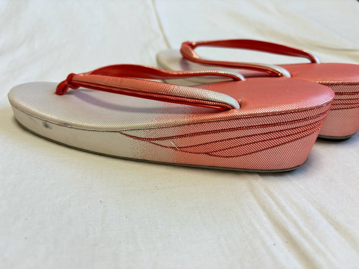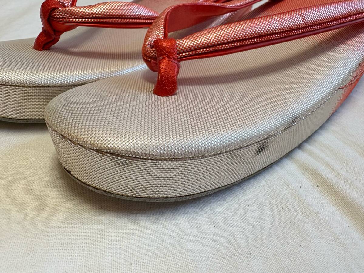 0003★草履*靴*履物*ピンク*シルバー*全長23㎝*下駄*着物*和装*和服*レトロ*アンティーク*レディース*女性*お得★