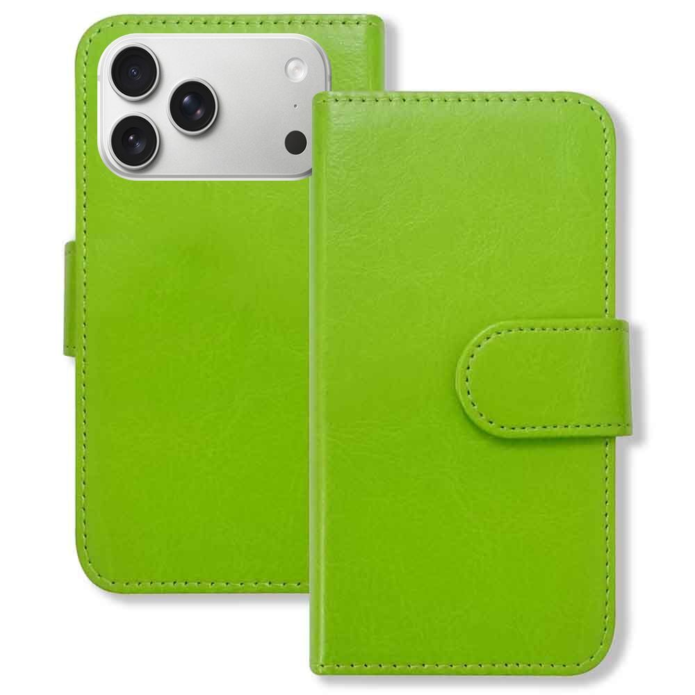 iPhone17 Pro Max スマホケース(手帳グリーン)手帳型 PUレザー 無地 ケース ダイアリータイプ 横開き カード収納 カバー
