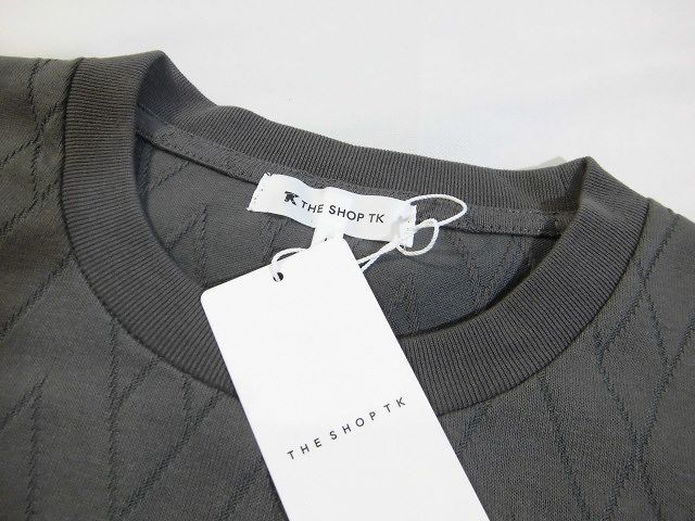 I土09677新品▼ タケオキクチ THE SHOP TK リンクスデザイン 長袖Tシャツ L チャコールグレー系 長袖カットソー ロンT 幾何学柄