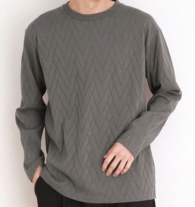 コットン×ポリエステル混紡素材で柔らかく、滑らかな質感がポイント。さりげない幾何学柄がキレイめで洗練された印象を与えてくれます。シンプルなデザインは1枚でもサマになり、ジャケットのインナーにも使用できるON/OFF兼用リンクスデザインTシャツです。