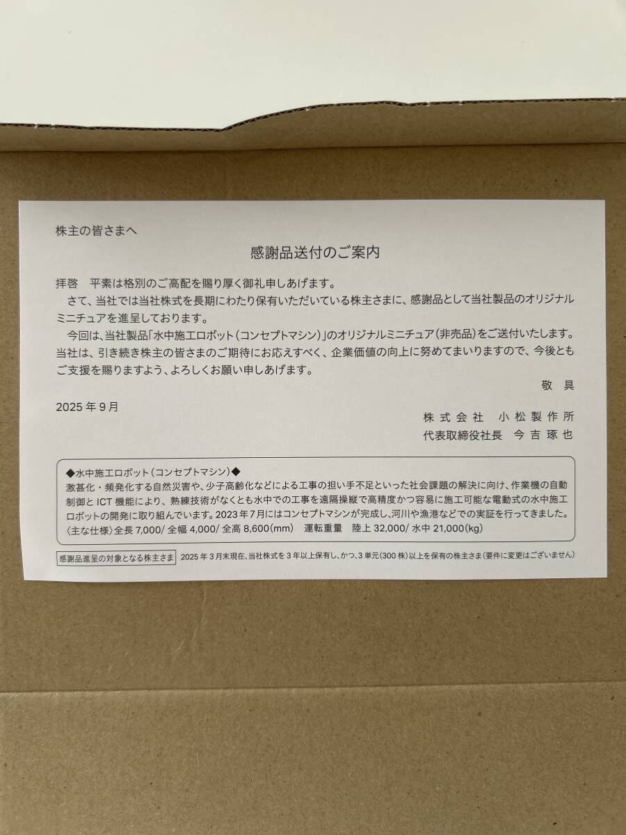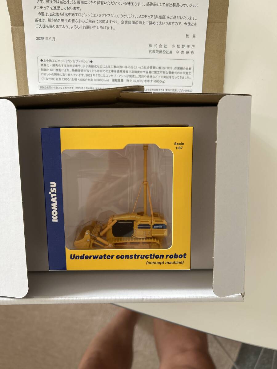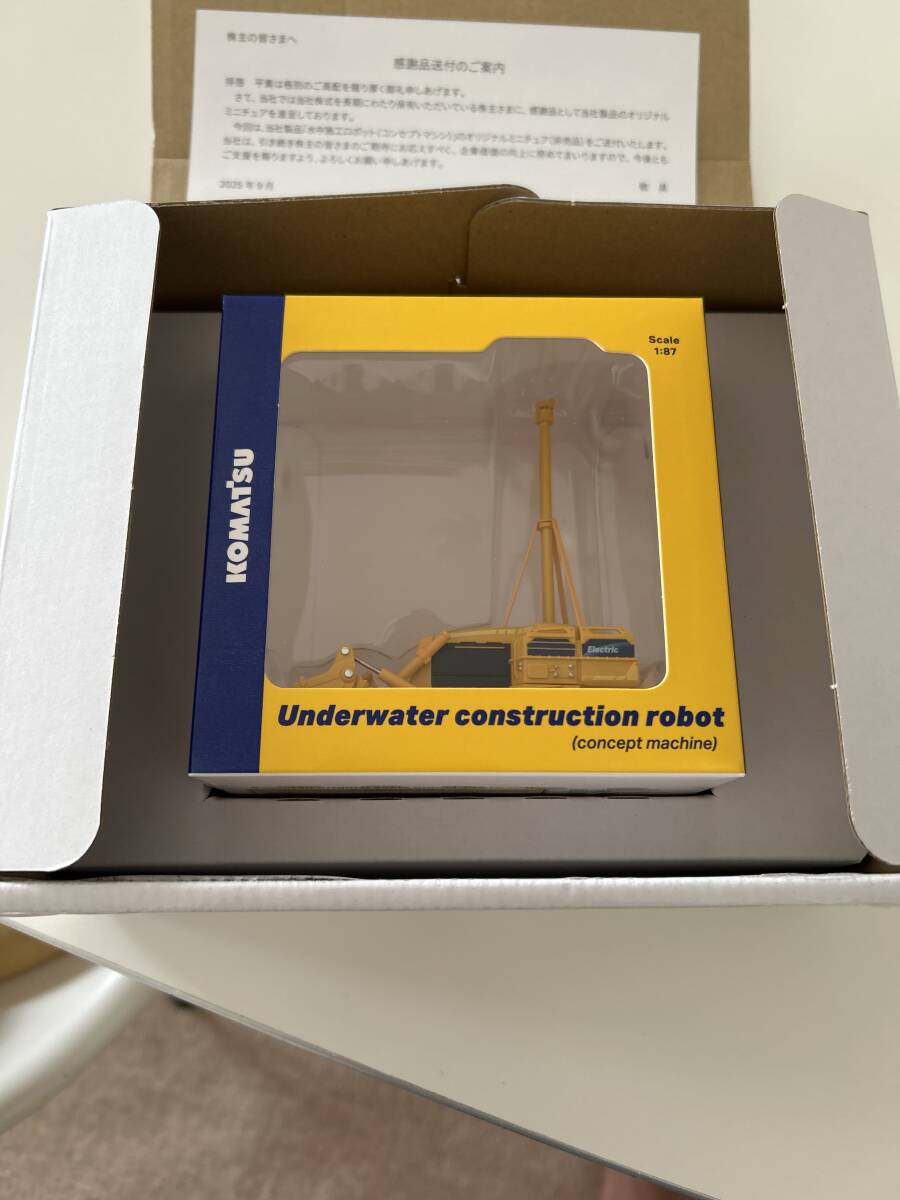 ★今週2025年9月、KOMATSU/コマツの長期株式保有の株主優待で頂いた『水中施工ロボット underwater construction robot』になります。