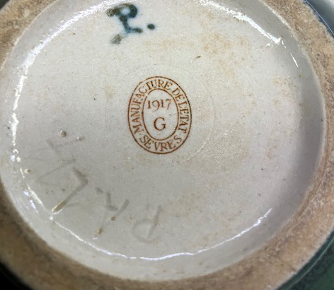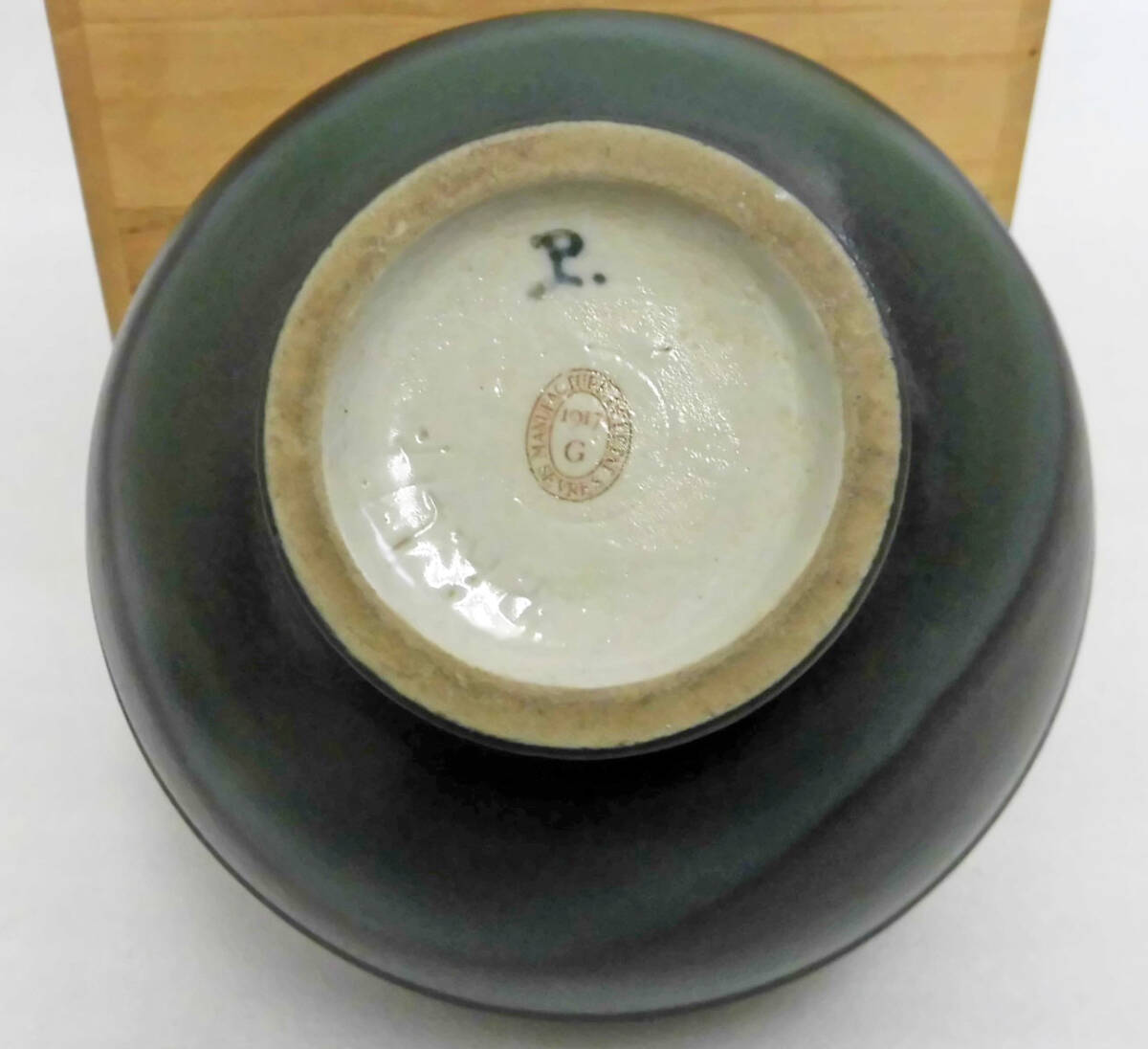 | 品名:1917年製 フランス・セーブル フリーボウル 作家:France・MANUFACTURE DE DELETAT社製 寸法:Φ≒13.8㎝ 丈≒8㎝ ≒415g 状態:ナポレオングリーンの素晴らしいセーブル・フリーボウルです。 1917年製、仏国名窯セーブルの極美品です。側面に緑の濃淡の波が表われています。 写真の通り、外側下部に≒1.3㎝線状の窯疵があります。底部にPALの釘字あり。 できるだけ説明いたしますが、写真でご判断ください。写真の色の誤差はご容赦ください 出品者の主観です。二十世紀初頭の数寄者による名陶セーブルへの特注品と思います。合箱(保存箱)の蓋に小反りがあります。108年経過品です。 | ||