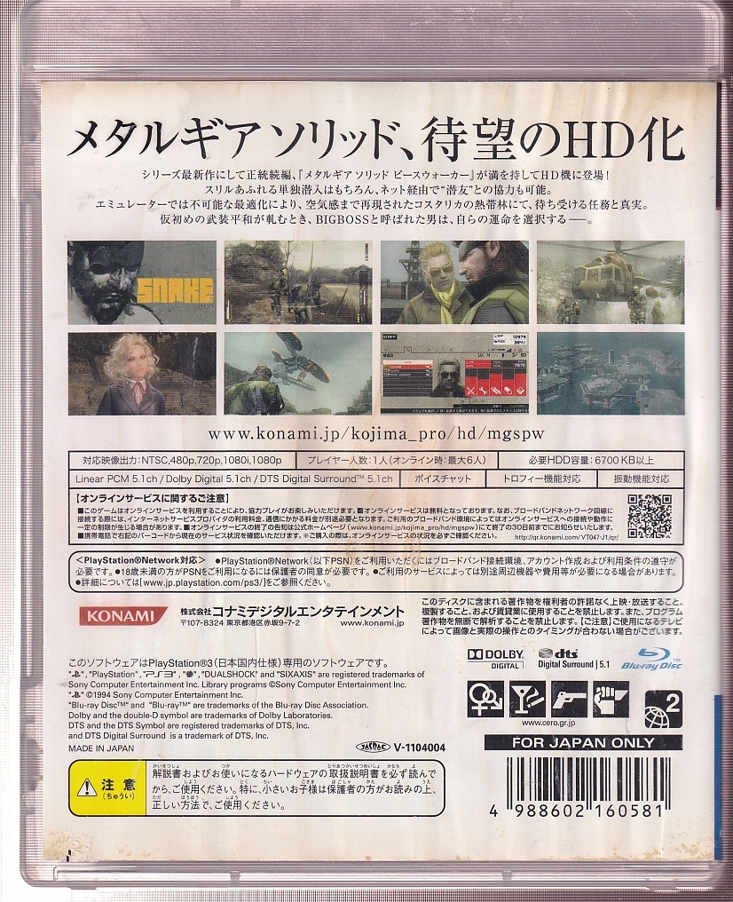 DA★中古ゲーム★PS3★METAL GEAR SOLID PEACE WALKER HD EDITION メタルギア ソリッド ピースウォーカー★VT047-J1