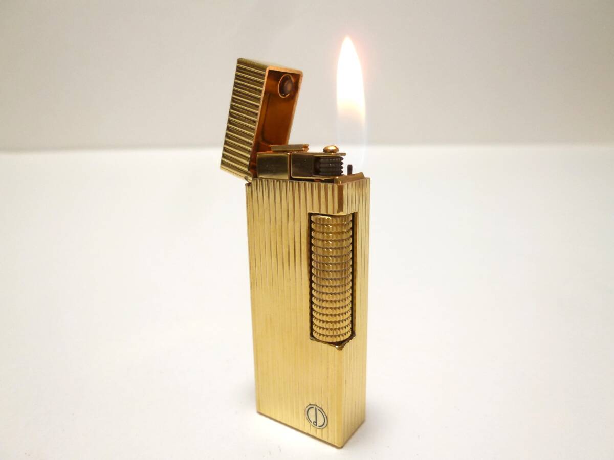 | ダンヒル dunhill ライター RL1402 ストライプ柄 ゴールド 着火OK 炎調整OK 美品!! | |