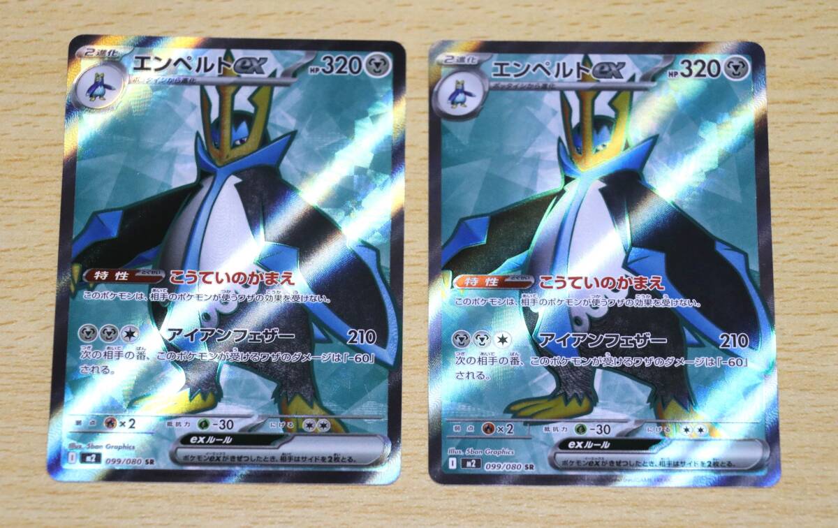 ポケモンカード インフェルノX エンペルトex SR 2枚セットです。気に入って頂けた方の落札を心よりお待ちしております。 商品は定型郵便(110円)又はゆうパケットポストで発送となります。厚さの関係上、定型郵便の場合は片面段ボール補強、ゆうパケットポストの場合は両面段ボール補強又は片面段ボール補強+プチプチ梱包のどちらかでの発送となります。どうかよろしくお願い致します。