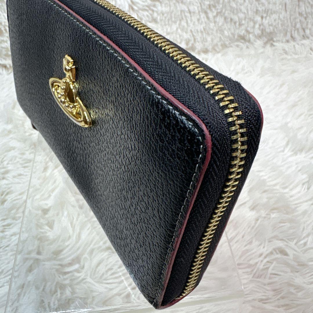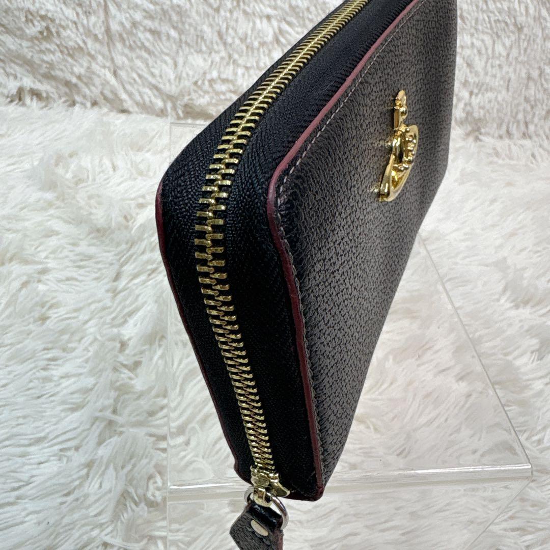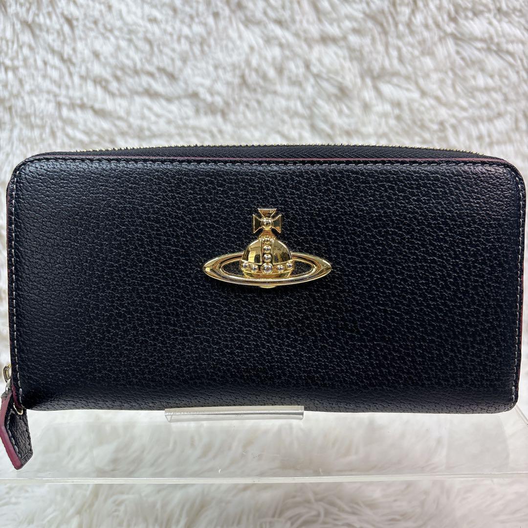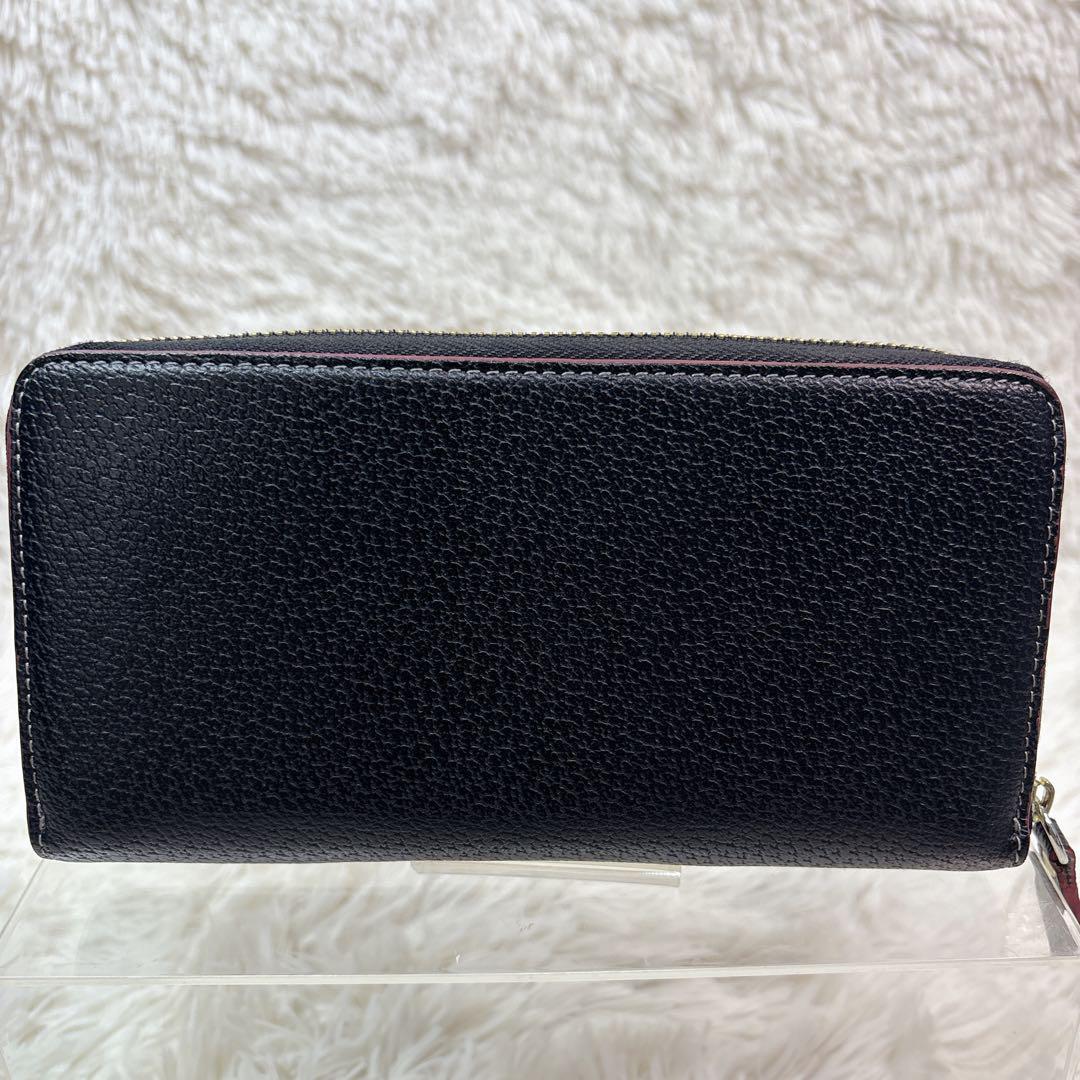 ブラック レザー ゴールドエンブレム ロゴ 長財布
