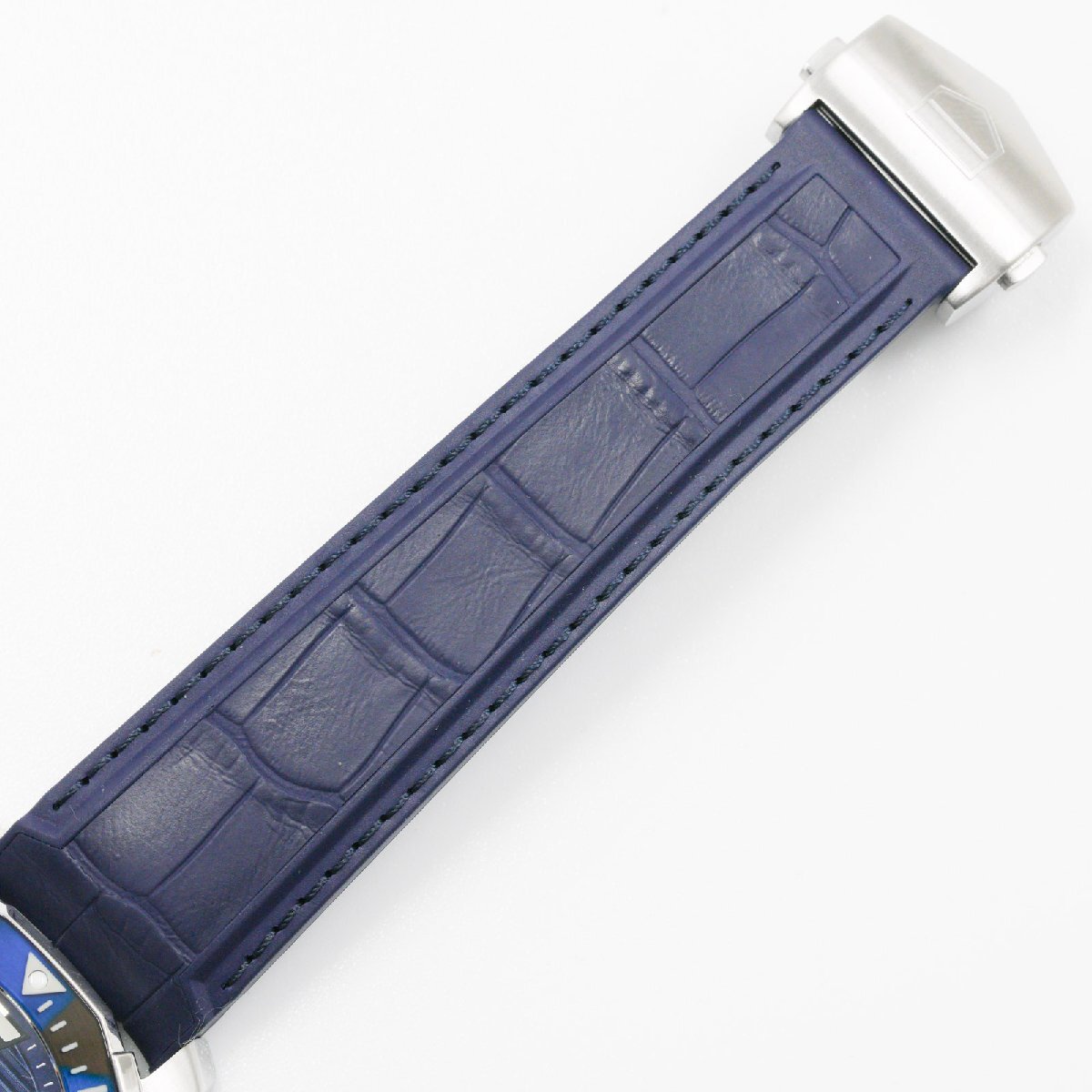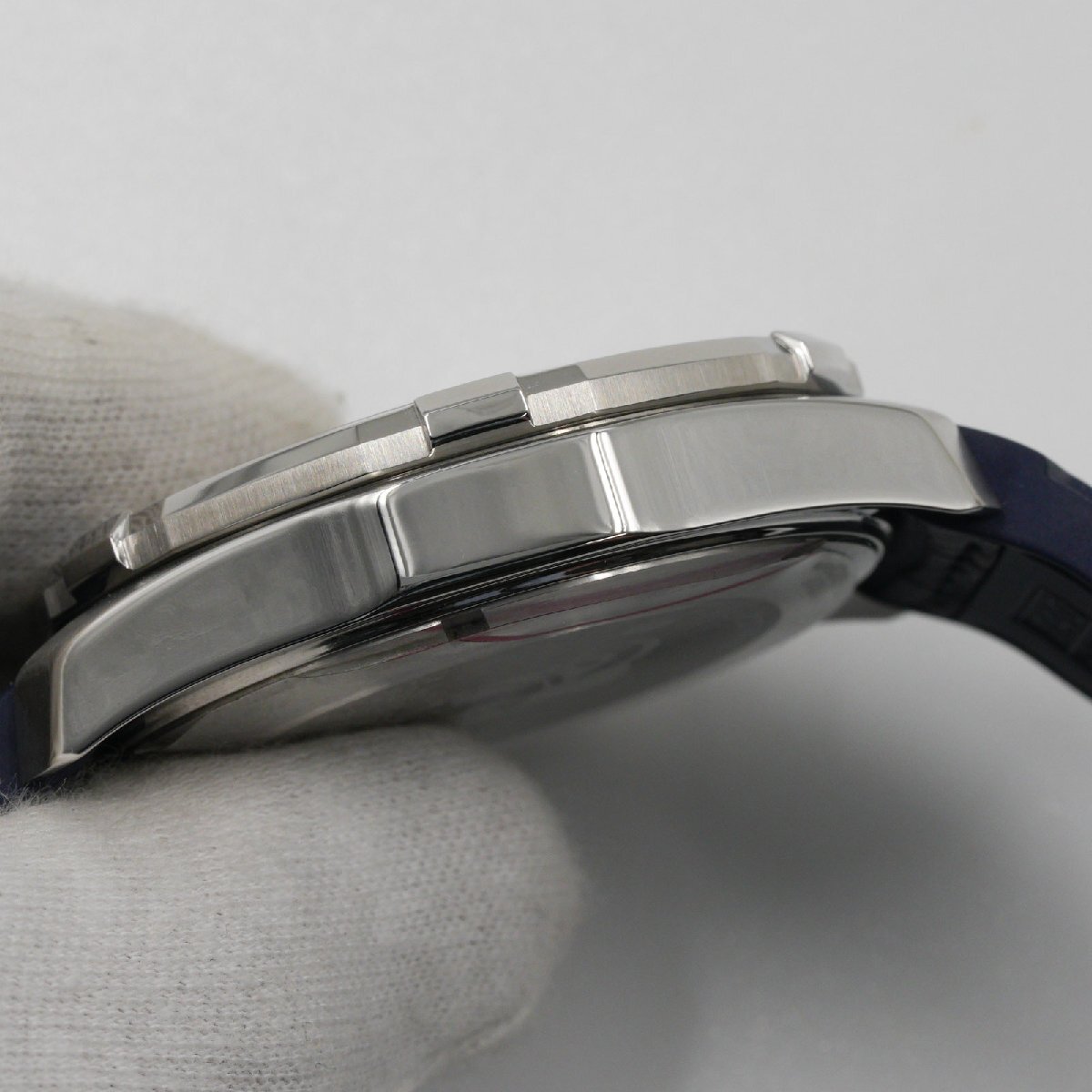 時計修理業者にて新品仕上げ済みです。特に目立つダメージもなくて美品です。バックルがスライド式のためベルトに金具跡があります。機能的には正常に動作しております。