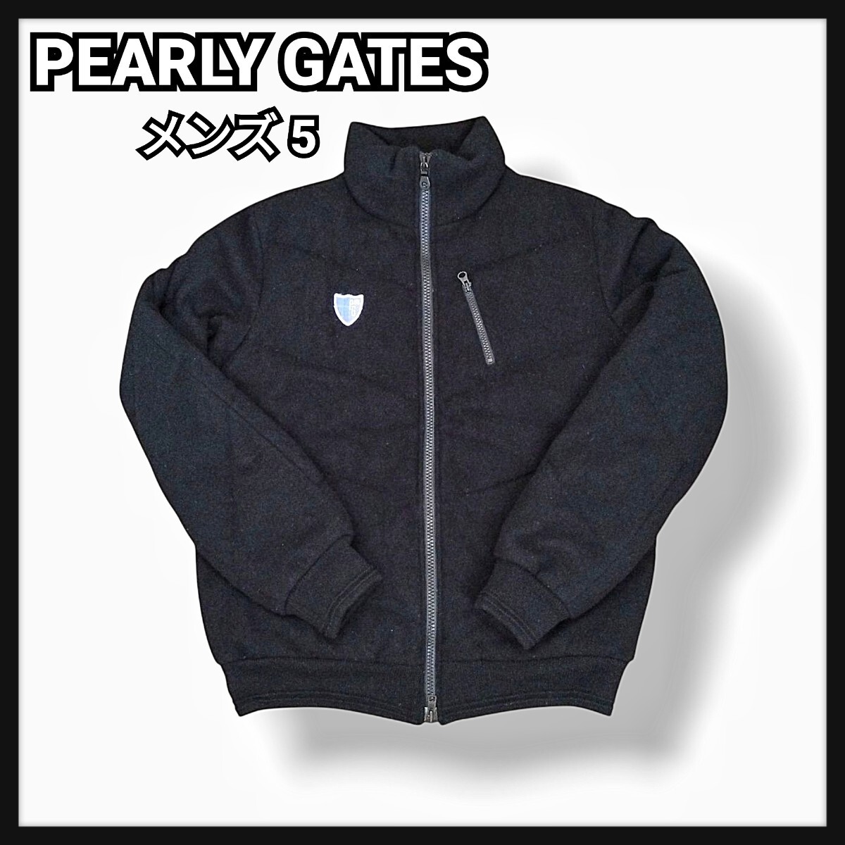 PEARLY GATES パーリーゲイツ メンズ5 ウール ダウンジャケット 【黒 Black L相当】希少 ゴルフウェア アウター 極厚手 ワッペン