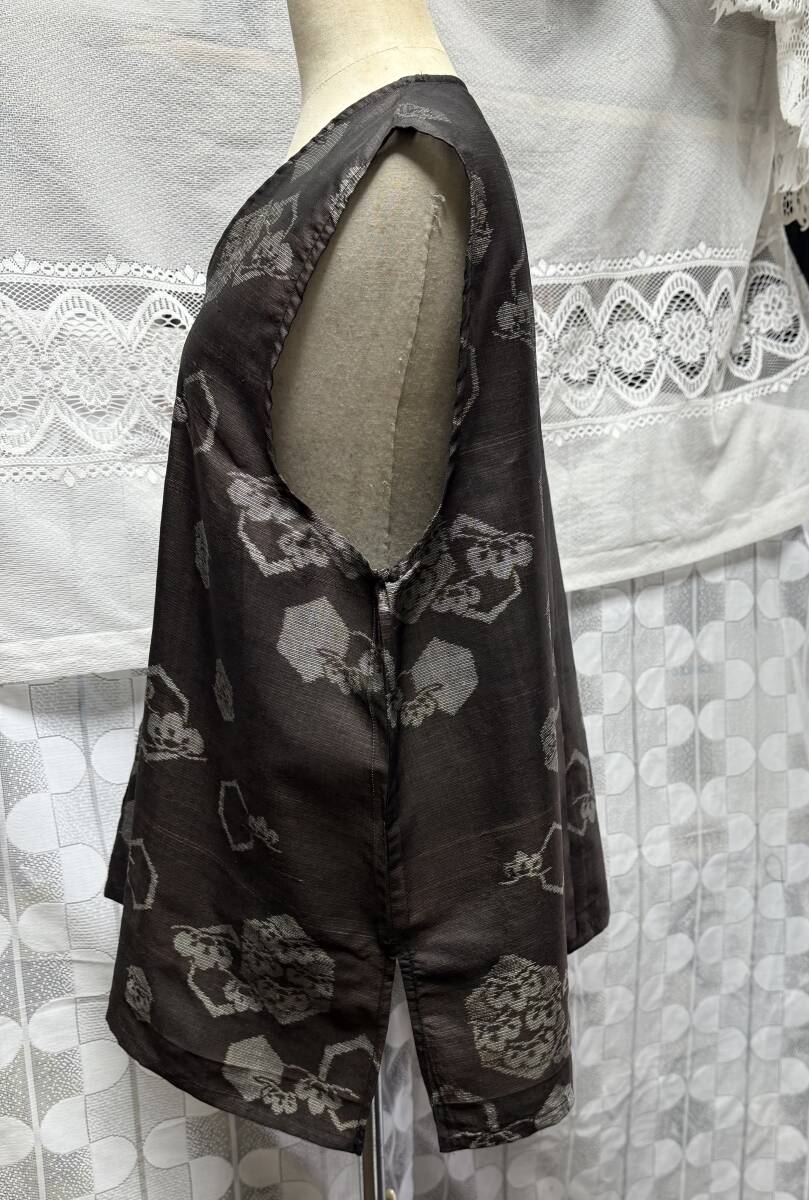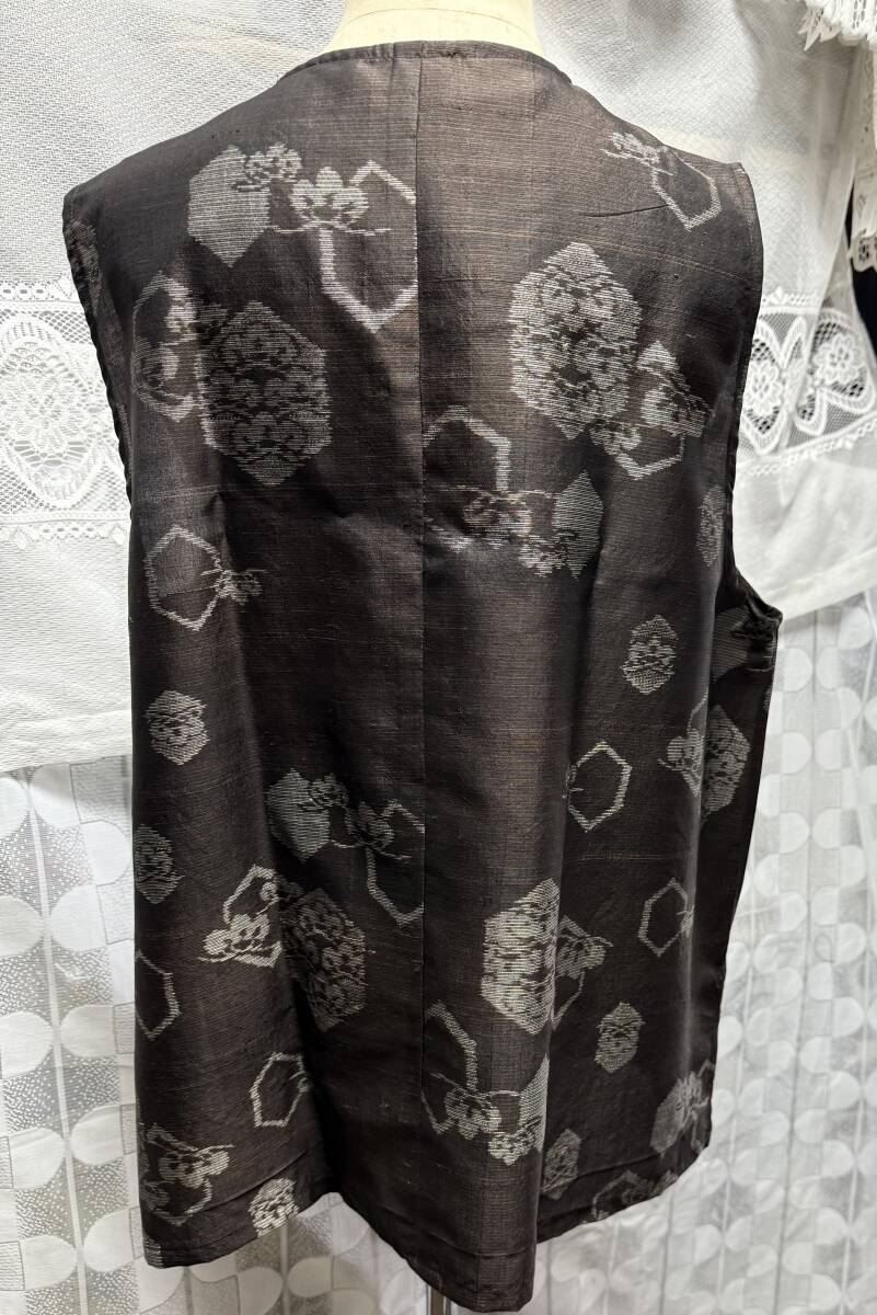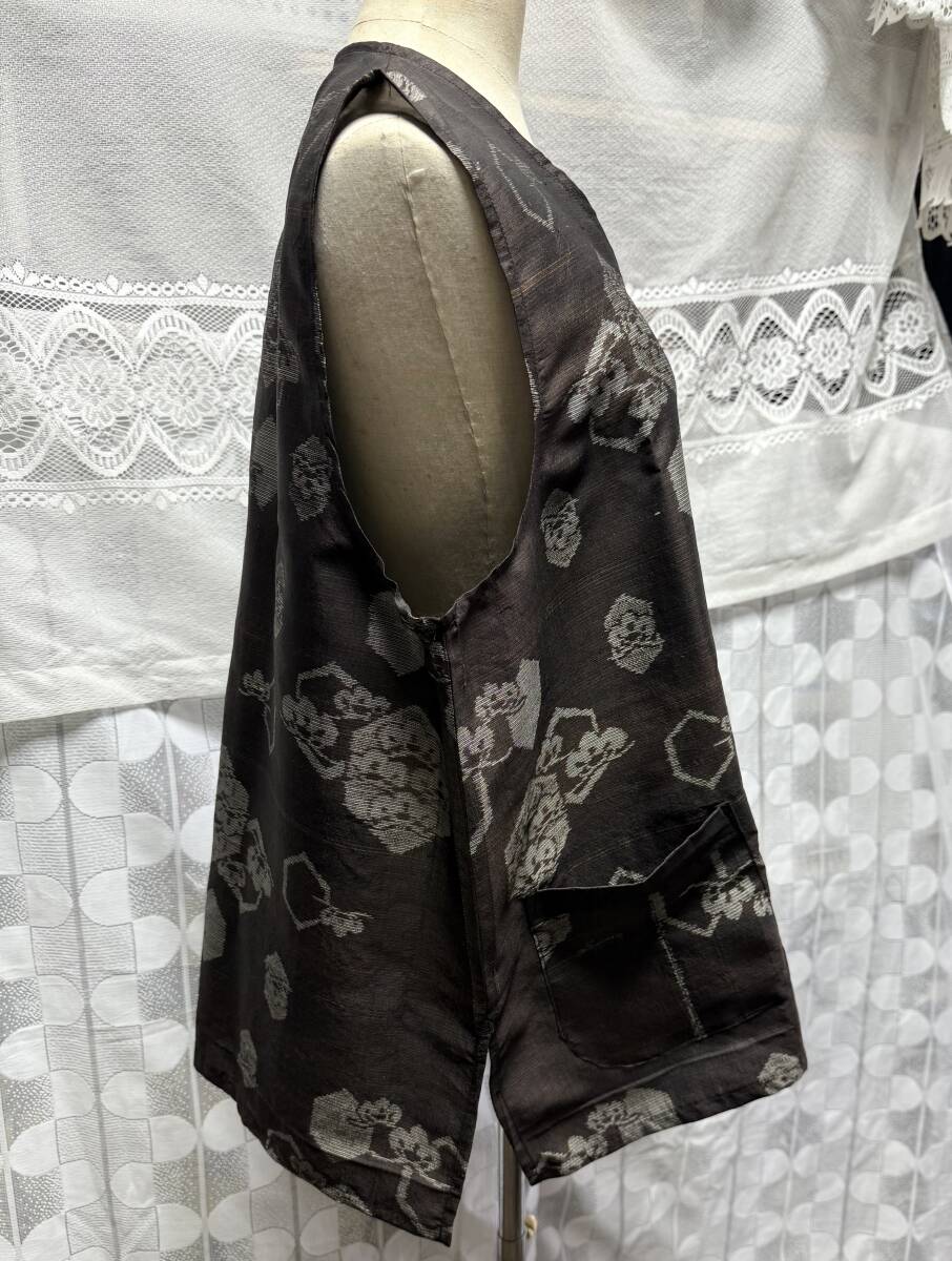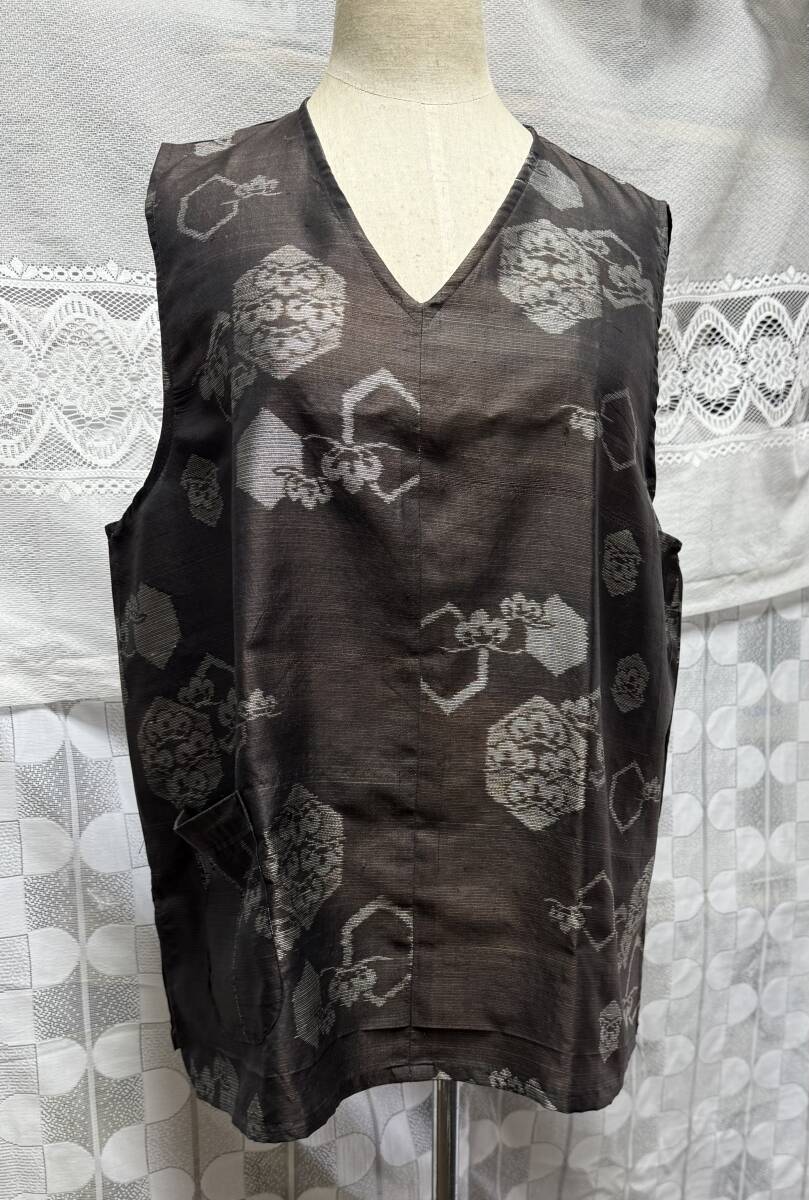 CYACO 着物リメイク 大島紬 一重 かぶり ベスト 正絹