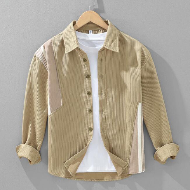 上質シャツジャケット シャツ 春秋新品 長袖シャツ メンズ ワークシャツ カーゴ 切替 トップス カーキ【M-3XL選択】