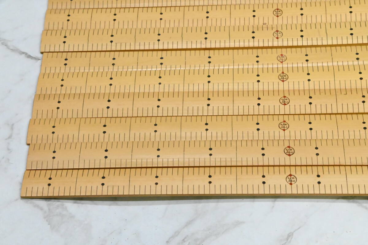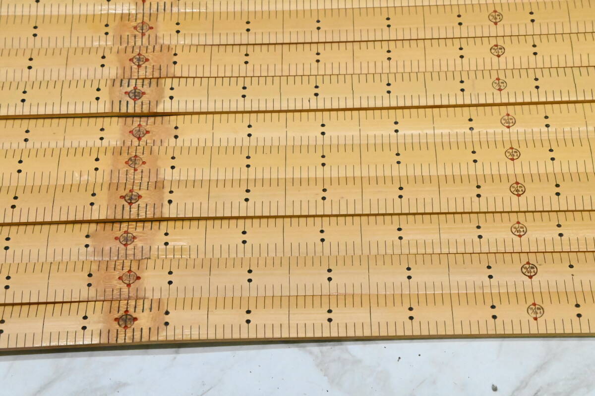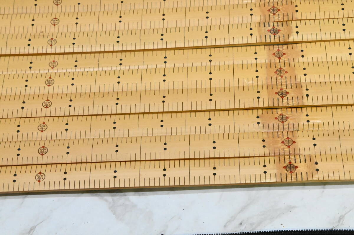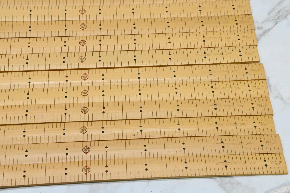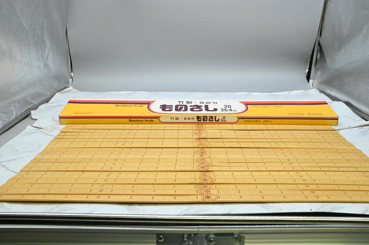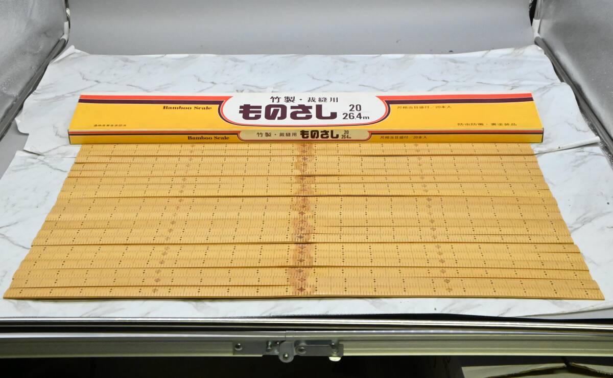| **竹製 ものさし 裁縫用 鯨尺 2尺両目(20/26.4m) 幅約21mm バンブースケール 1箱20本セット 未使用保管品 になります。 品物自体は全て箱に入っていたので、恐らく未使用かと思います。 5寸、1尺、1尺5寸の位置に赤印が入ります。2尺のものさしは、中間に竹の節目がはいります。 ただかなり長期保管されていた為、反りがある物もあります。 詳細は画像にてご確認ください。 ※撮影に使用している小物類・撮影補助道具は付属しません。 店頭で購入するような完璧をお求めの場合はご遠慮ください。 使用の際は清掃など御手数ですが、商品到着後ご自身でお願いいたします。 【サイズ】 鯨2尺(20/26.4m) 1鯨尺(くじらじゃく)≒ 37.88cm×2尺 75.76cm ※詳しくは画像にてご判断頂きノークレーム、ノーリターンでのご入札をお願い致します。一度人の手に渡った物が大半ですので、神経質な方は入札をご遠慮下さい。 ※商品が入っている箱などには傷みや汚れ等があるとお考え下さい。箱などは付属しない場合もあります。なお未使用となっていても、包装紙などに破れ等ある場合がございます。 ※ご覧頂く環境によって色の見え方に差異があるかと思いますのでその点ご了承下さい。 ※不明な点がある場合は必ず事前に質問下さい。分かる範囲でお答えします。 ※入札の取り消しや落札のキャンセル、クレームや返品などは一切受け付けません。 ☆同梱不可と記載の商品以外は基本的に、ゆうパックで最大170サイズまで同梱可能です。 なおスムーズにお取引を進める為にも ★同梱希望の方は取引ナビで落札者情報入力前に、全ての商品にコメントをお願いいたします。 →落札点数確定後、梱包サイズを計測した後に送料を確定させて頂きます。 | |||