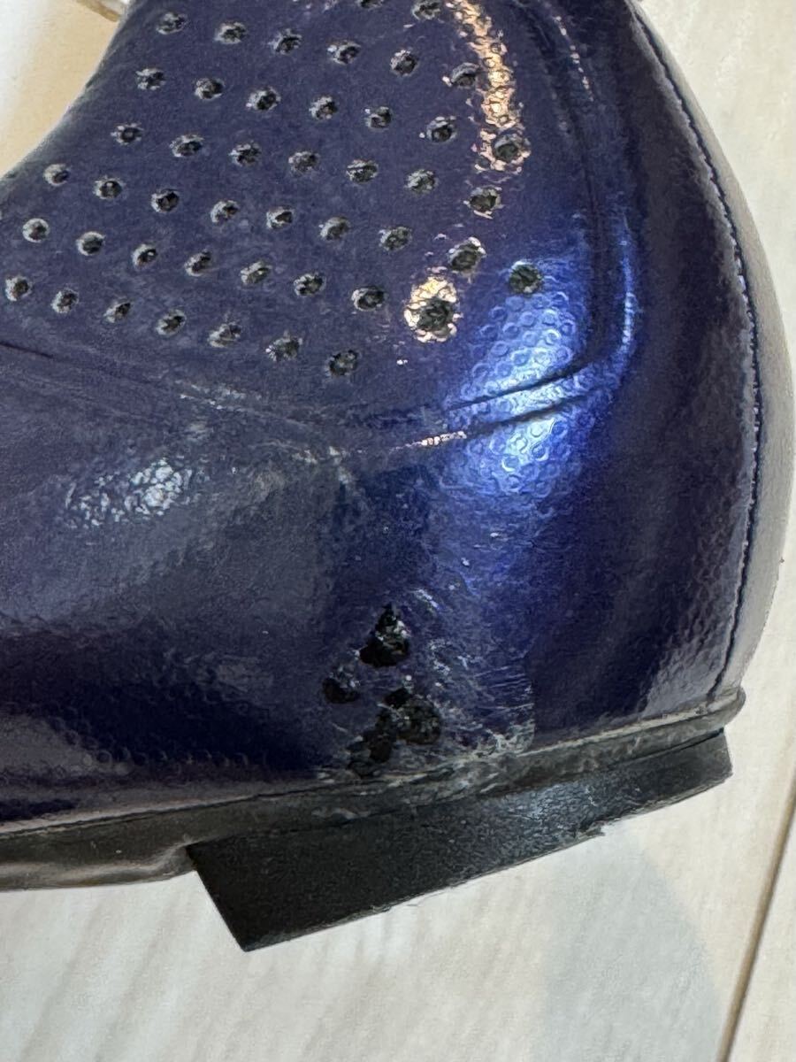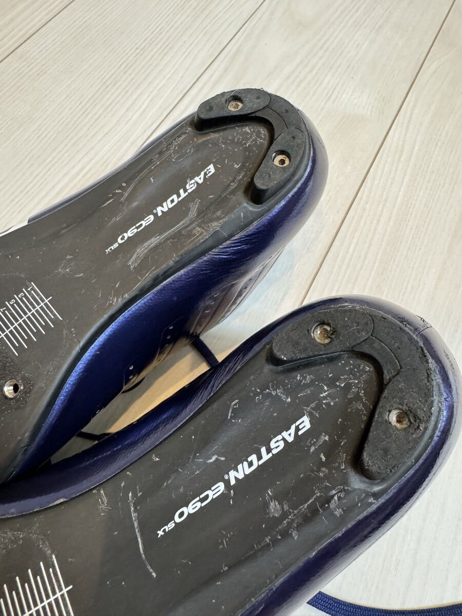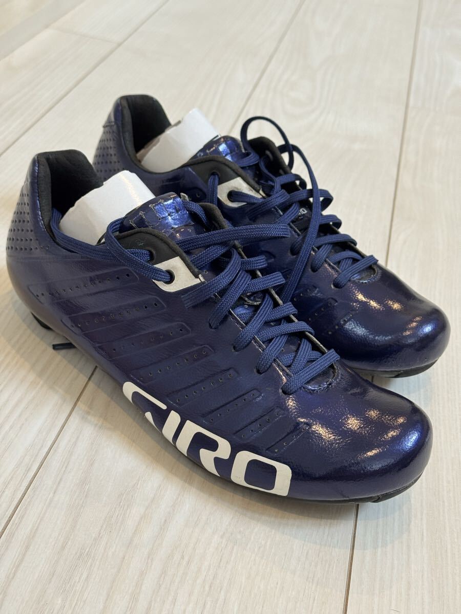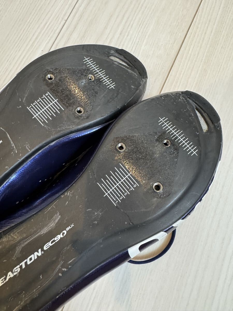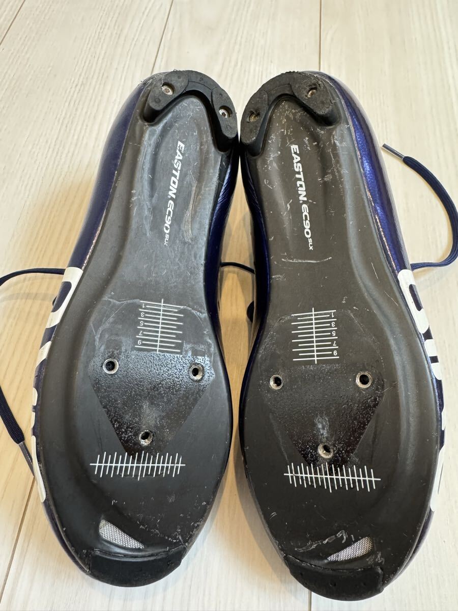 ジロの軽量カーボンソールのサイクリングシューズの中古品です。紐で締め付けるため、細かなフィッティングが可能です。カラーはバイオレットのメタリックで、とても綺麗です。商品の特性上、どうしても使用に伴って傷がついてしまいますが、目立つ部分は画像に収めましたので、ご確認ください。中敷きは、別のものを使っていましたので、使用していません。購入時の付属品も揃っていますので、こちらも画像にてご確認ください。サイズは41ですが、ジロは細めのフィットとなりますので、他メーカーの40.5くらいとの比較になると思います。シューズが増えてしまい、あまり使用する機会がないため、出品いたします。宜しくお願いいたします。