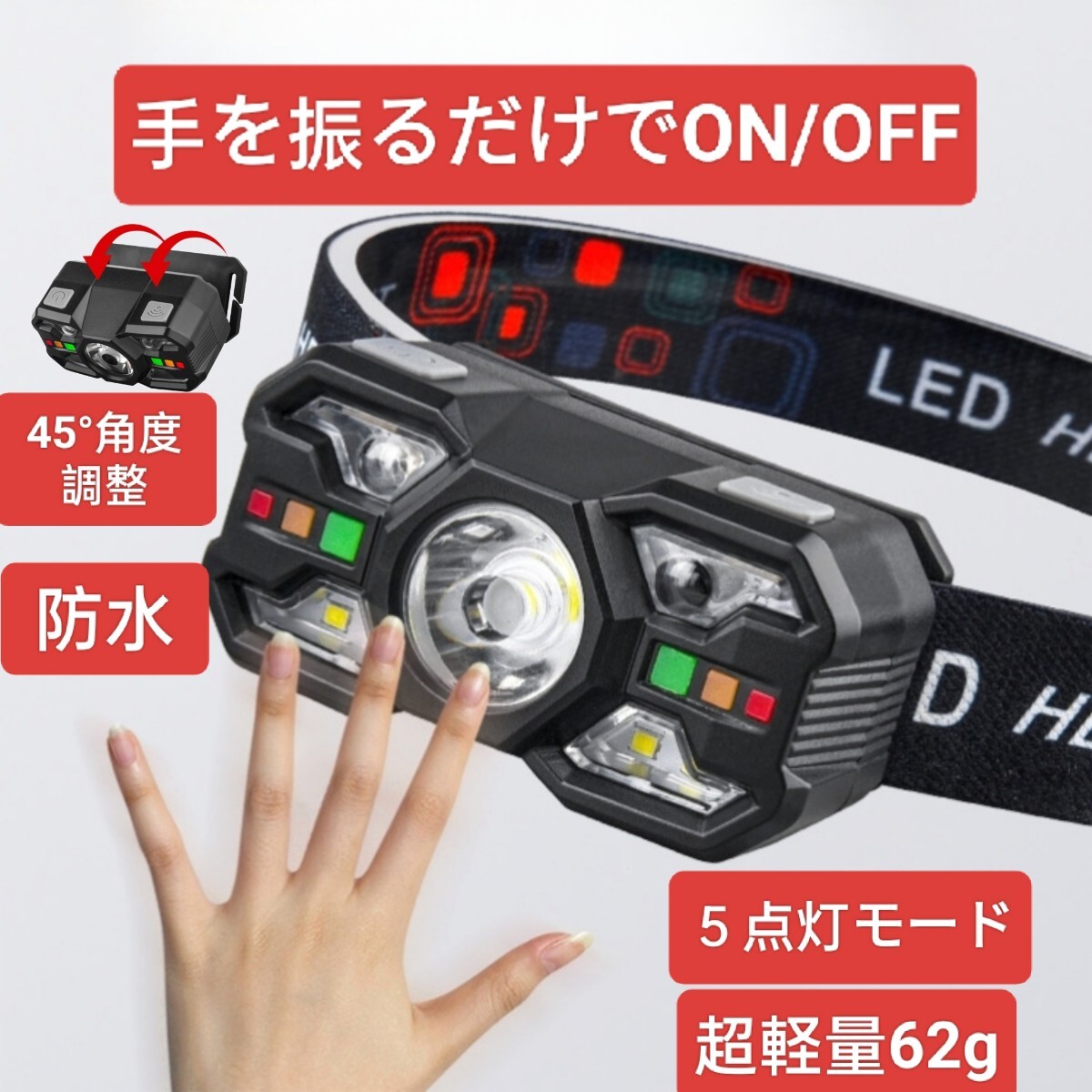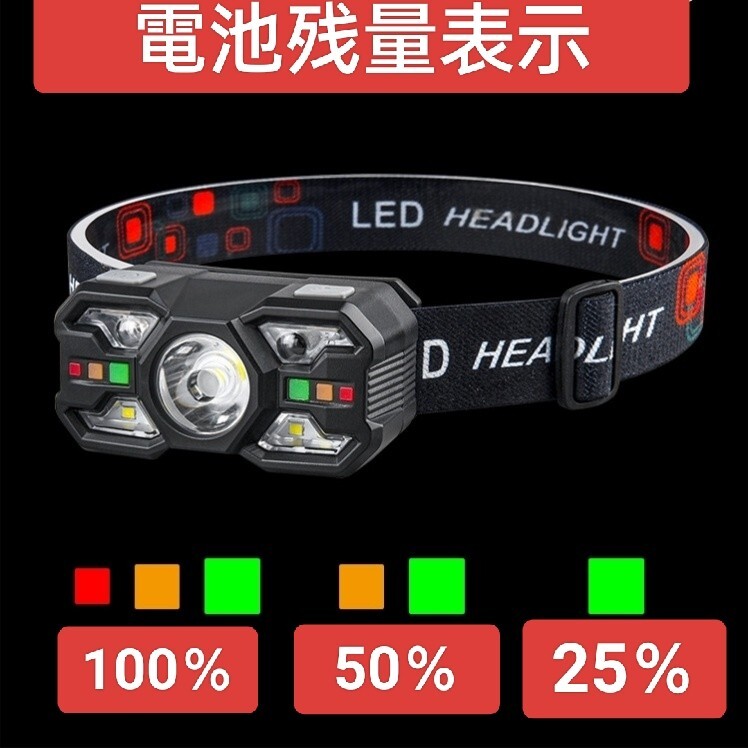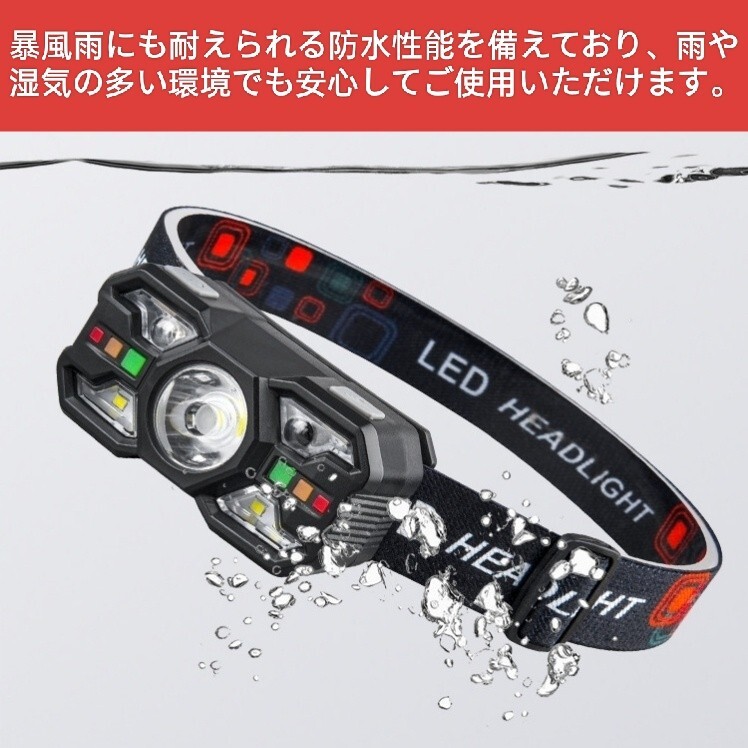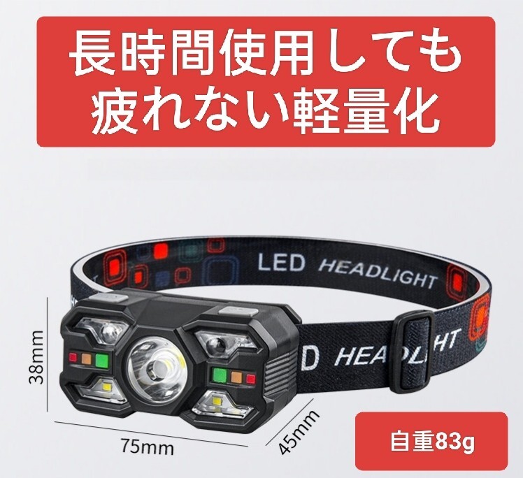 メインライト(強/弱)、白色補助ライト、赤色補助ライト、赤/白交互点滅モードなど、様々なシーンに対応可能です。