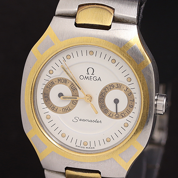 1円 稼働 オメガ シーマスター ポラリス YG×SS QZ ホワイト文字盤 メンズ腕時計 0070400 9BJT SMZ