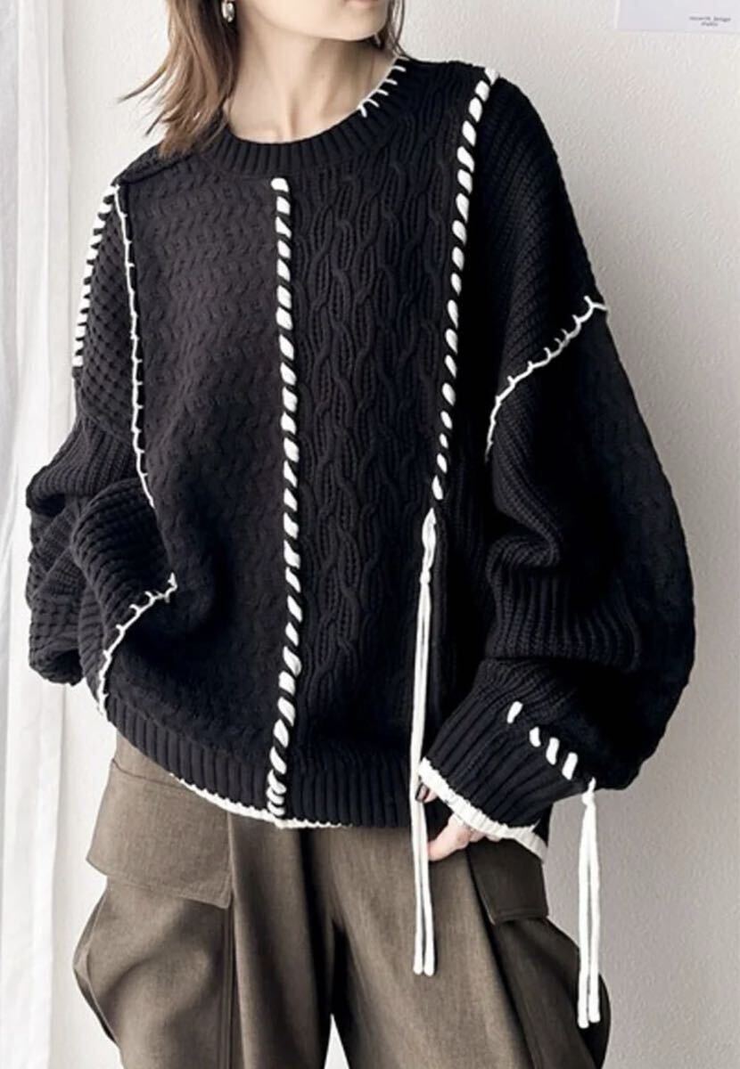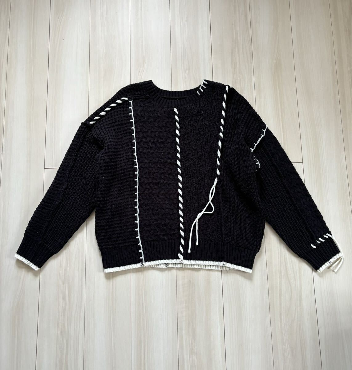Classical Elf クレイジーステッチ クルーネックニット ブラックです。