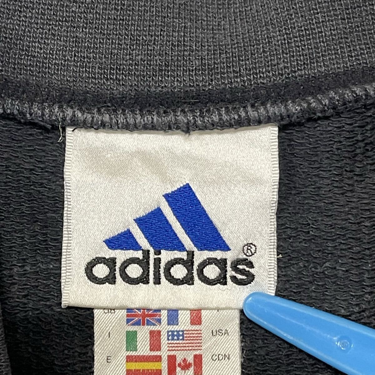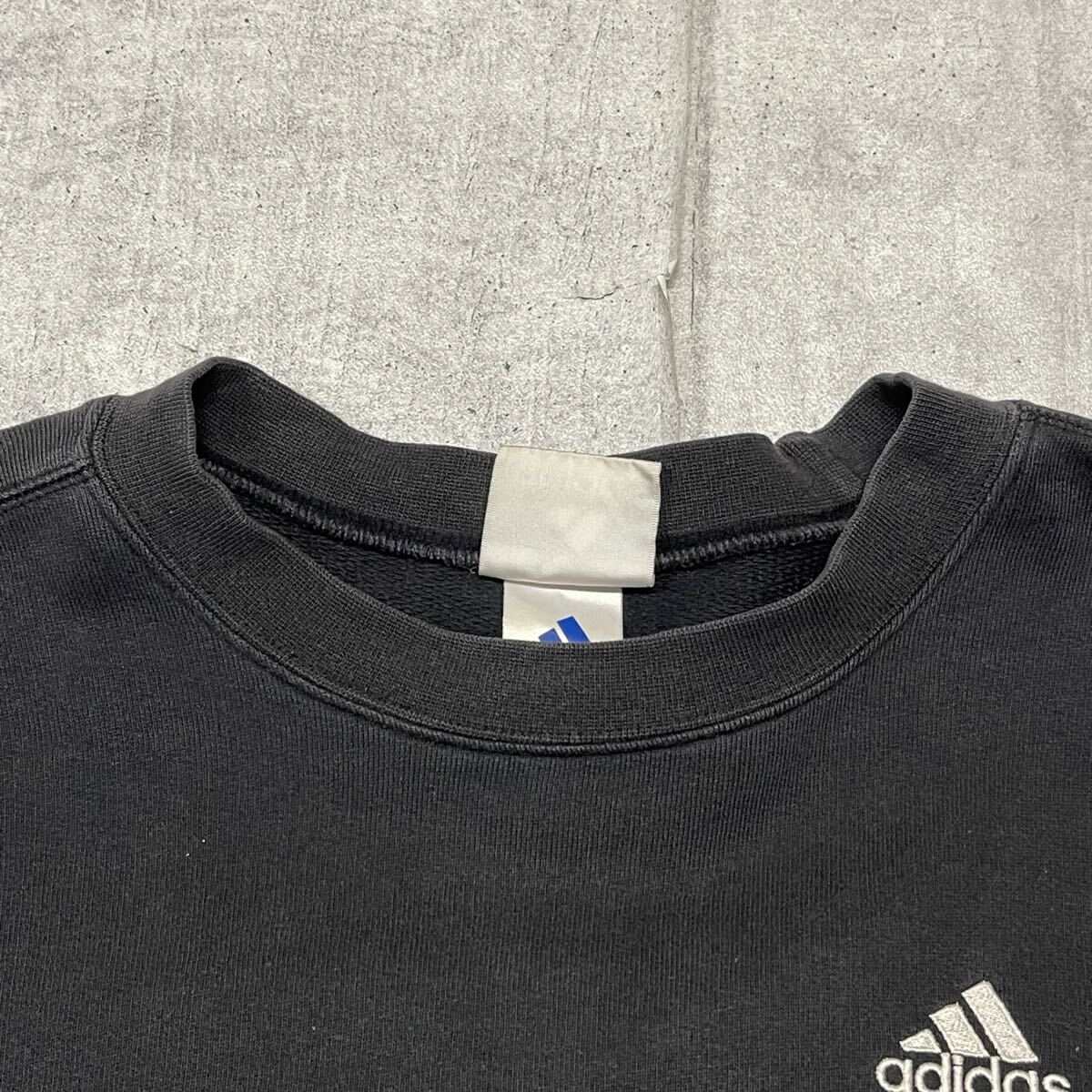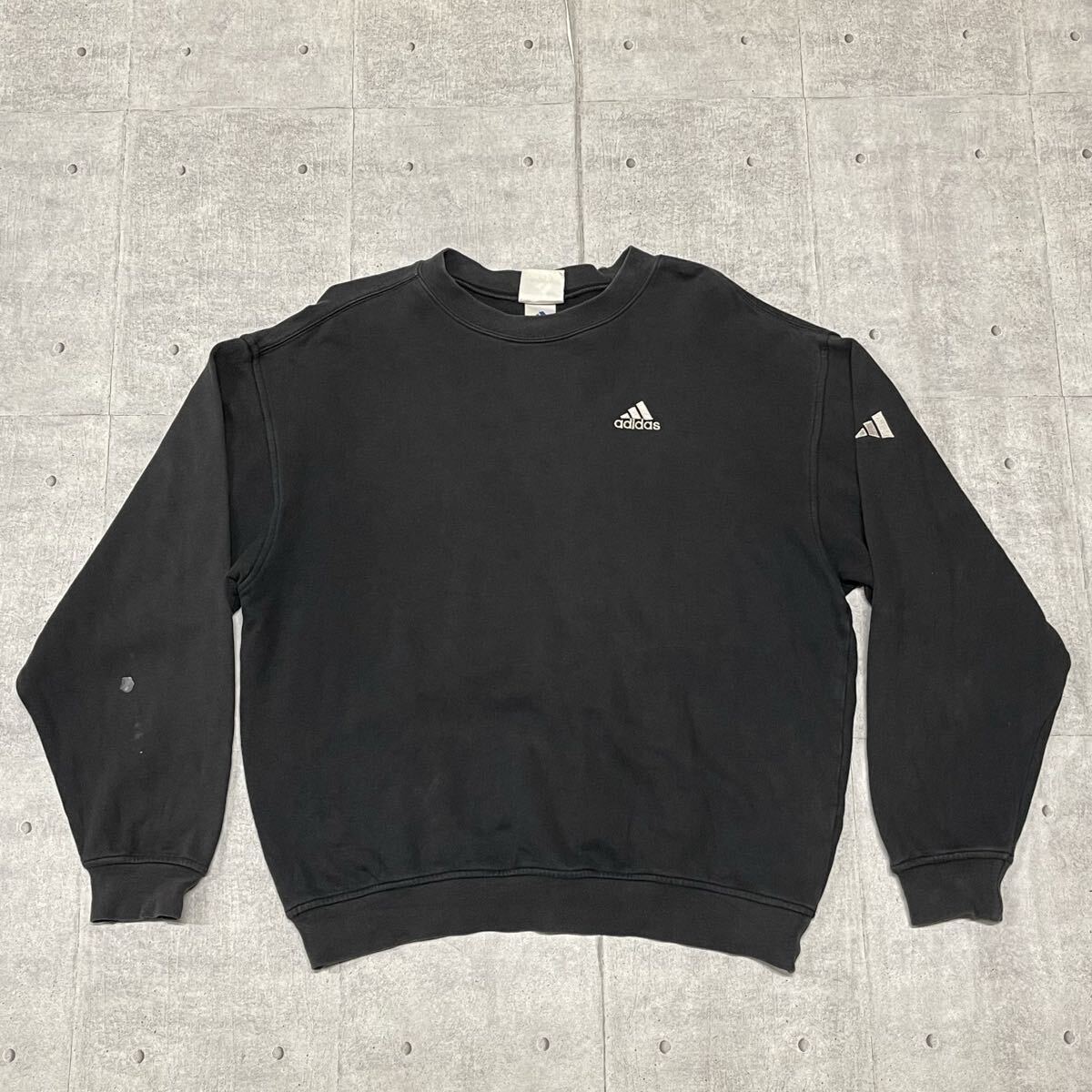 90s 00s adidas スウェット ブラック 刺繍ロゴ アディダス  90年代 00年代 トレーナー ワンポイント パフォーマンスロゴ 早5990 万国旗タグ アームロゴ モーションロゴ vintage ビンテージ スポーツ