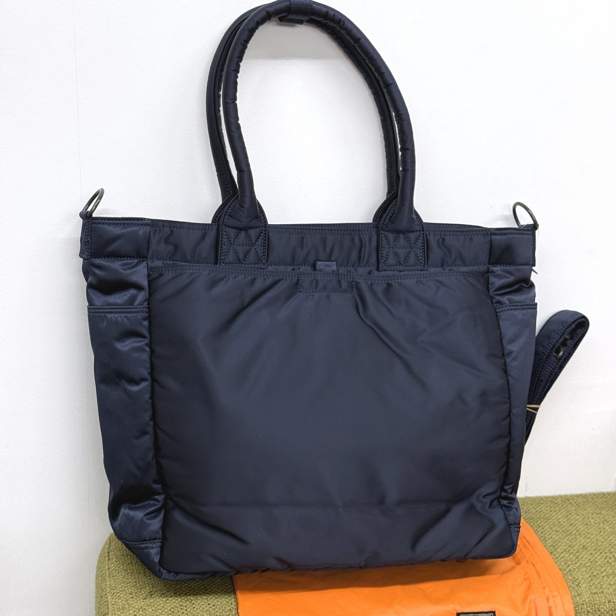 | ポーター タンカー(現行) トートバッグ(L) 622-26109 アイアンブルー・ネイビーです。 当方お付き合いの業者様よりお譲り頂いた未使用品になります。 出品に際し正規品であるのを確認しています。 *再出品につき画像を再使用しています。お届けするのは掲載画像後ろよりの未開封品になります。画像にはありませんがプライスタグが付いています。 大体のサイズは幅が34cmくらい、高さが32cmくらいとなります。 取り外しできるショルダーストラップが付属しますのでトートバッグ、ショルダーバッグの2通りでお使いいただけます。 カラーはアイアンブルー・ネイビー(紺色)です。 吉田カバンのサイトに紹介ページがありますので参考にしてください。 流通在庫として保管されていた物です。 未使用品となりますが保管時の折グセ等はご容赦くださいませ。 |