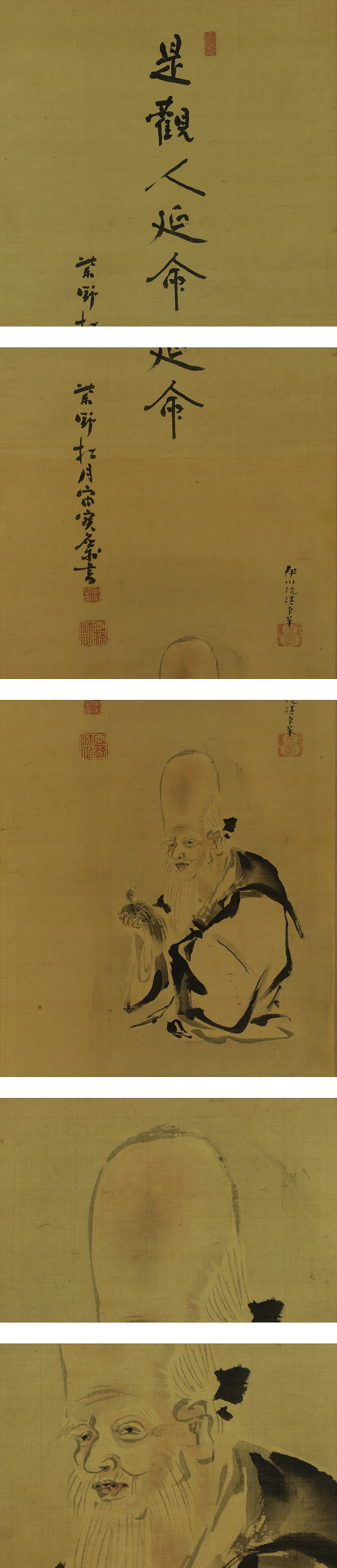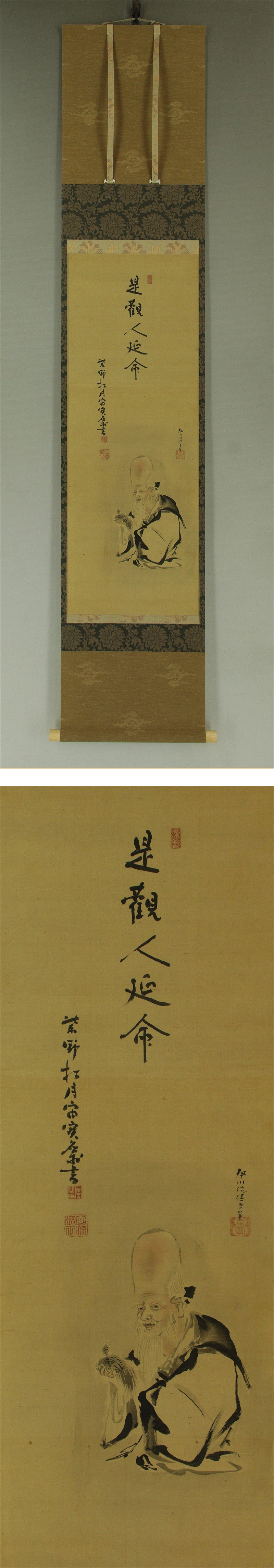 | №2503059【模写】狩野伊川院画・宙宝宗宇賛【寿老人】◆絹本◆合箱◆改装済掛軸 | |