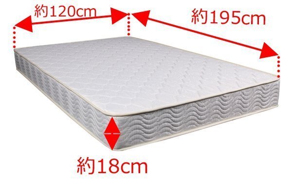 | 商品サイズ | ≪仕様 ≫ ●本体寸法…約120(幅)x約195(奥行き)x約18(高さ)(cm) ●マットレスの厚さ…約180(mm) ●生地素材…ファブリック |