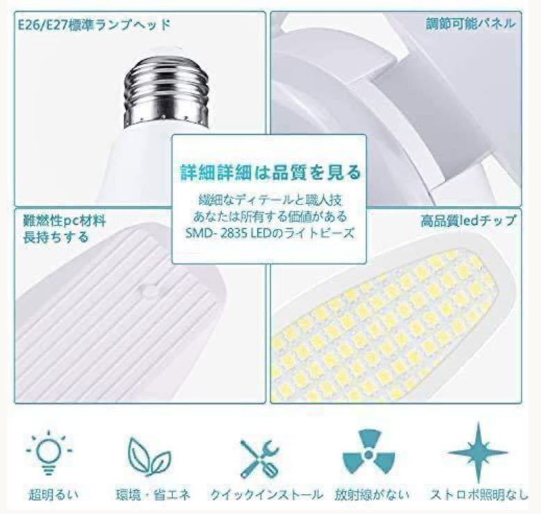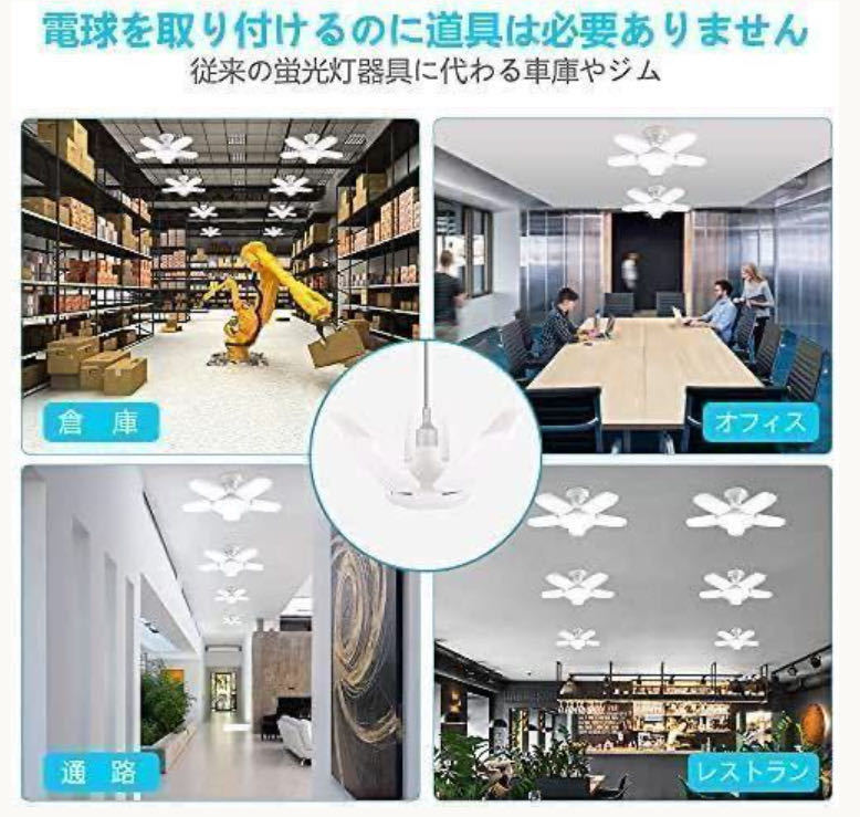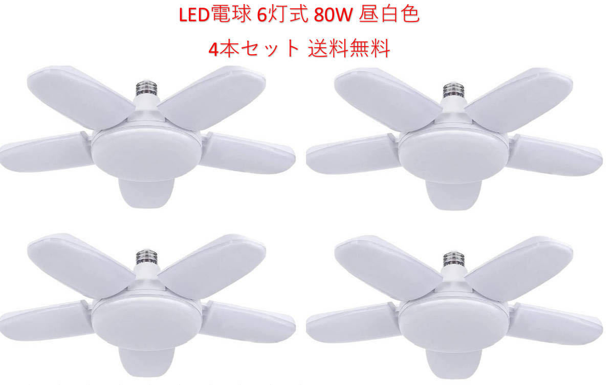 LED ガレージライト シーリングライト 蛍光灯 80W 6灯式 E26 E27 電球 昼白色 6500K 照明器具 天井照明 ペンダントライト 倉庫 4個セット