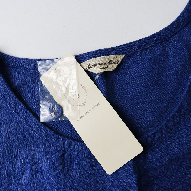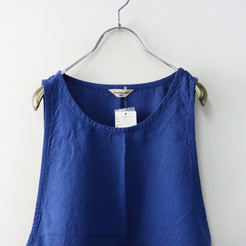 未使用 サマンサモスモス Samansa Mos2 エプロンワンピース F|ブルー トップス ノースリーブ リネン コットン【2400014619607】