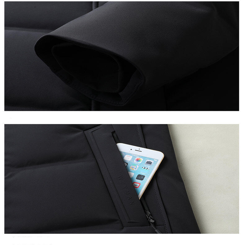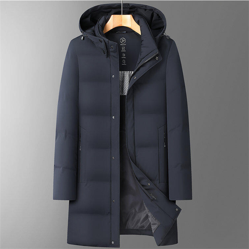 A731-2XL ダウンコート メンズ ダウン90% ベンチコート 高級 撥水 膝下コート 厚地 超ロングコート 冬 防寒  防風 暖かい/ネイビー