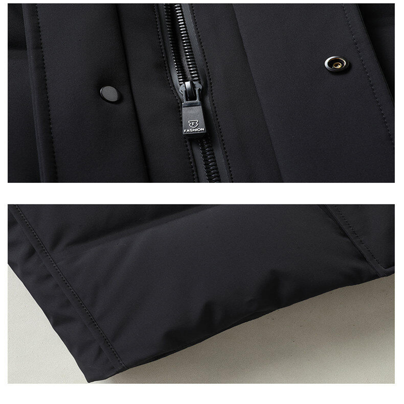 A731-2XL ダウンコート メンズ ダウン90% ベンチコート 高級 撥水 膝下コート 厚地 超ロングコート 冬 防寒 防風 暖かい/ネイビー
