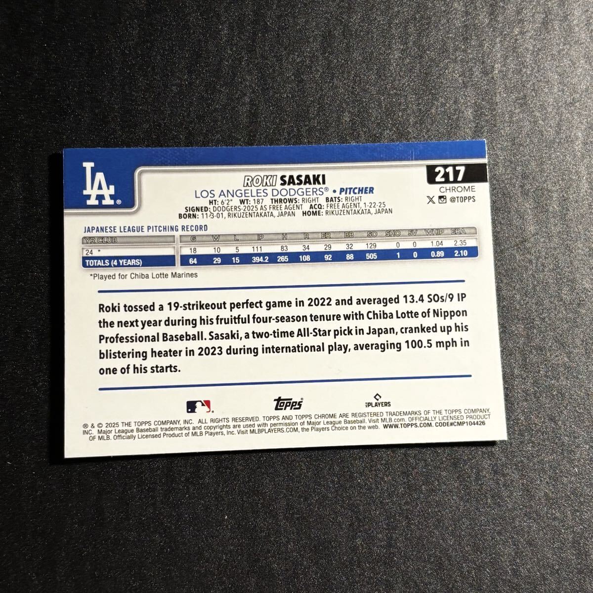 佐々木朗希 2025 Topps Chrome XFRACTOR ルーキーカード Roki Sasaki Rookie Card MLBカード