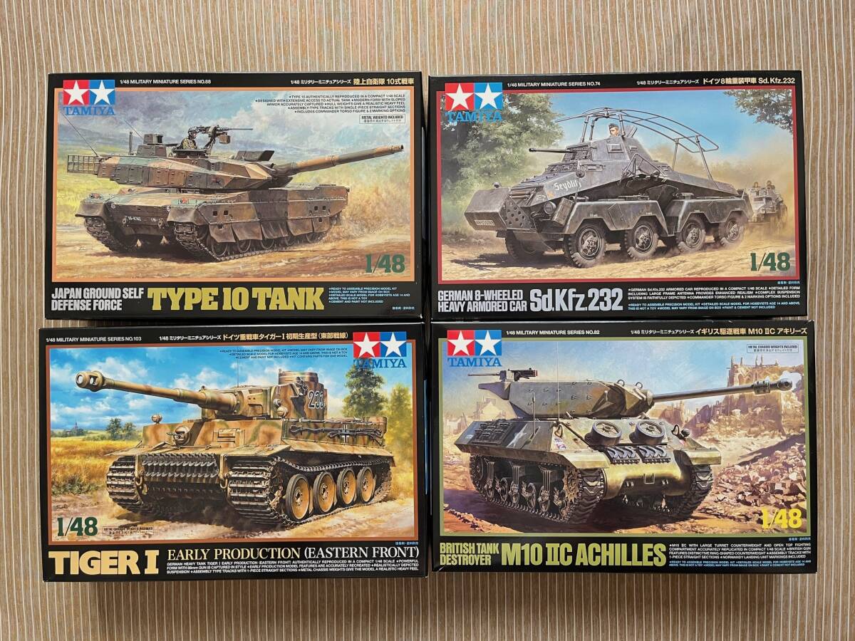 タミヤ 1/48 ミリタリーミニチュアシリーズ 10式戦車・タイガーⅠ・sd.kfz.232・M10 4個セット