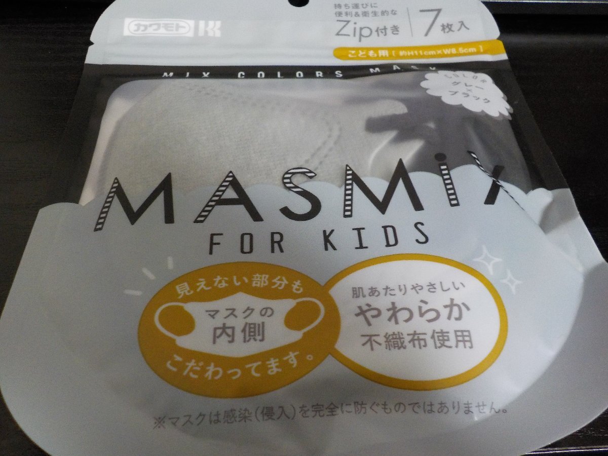 新品 MASMiX マスク KIDS グレー×ブラック ( 7枚入 ) クリックポスト発送可 切手可