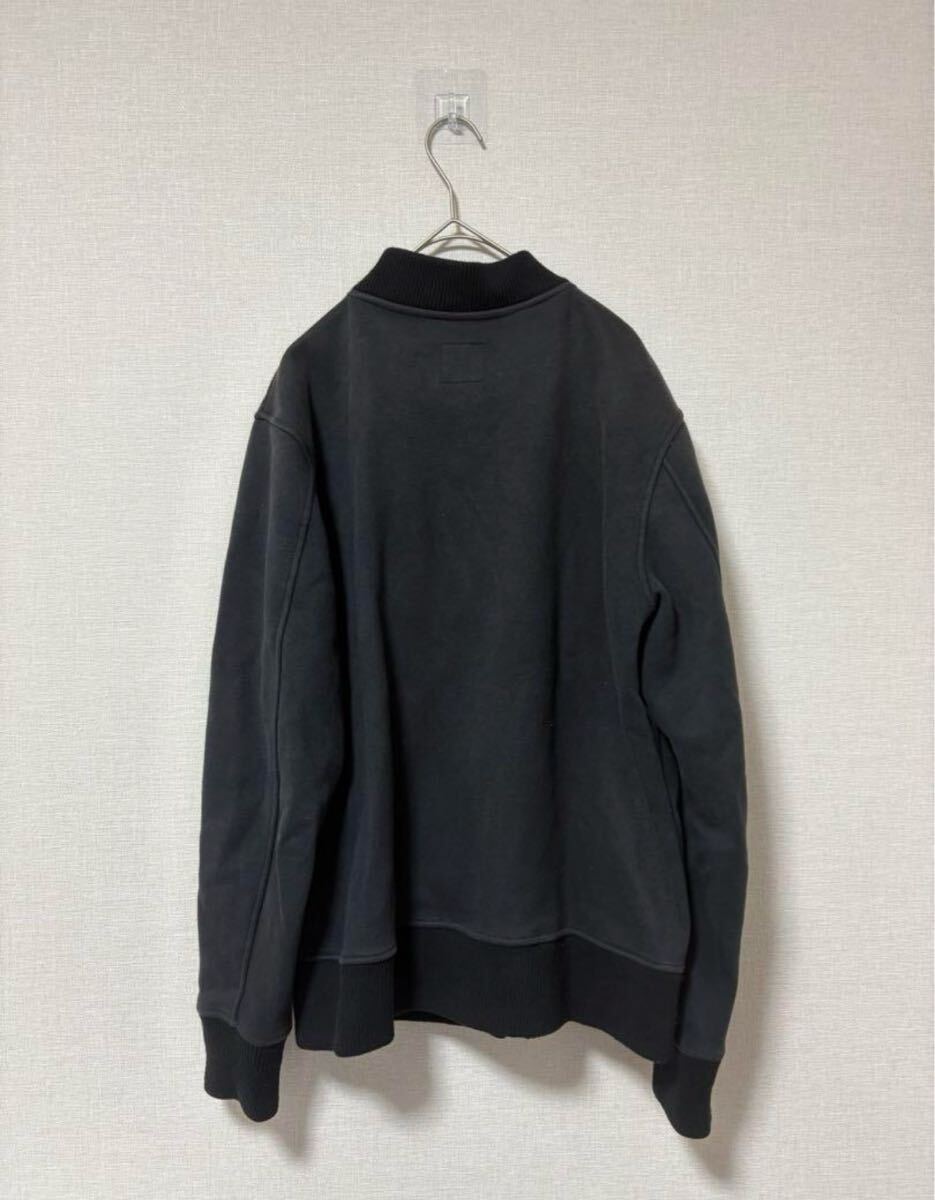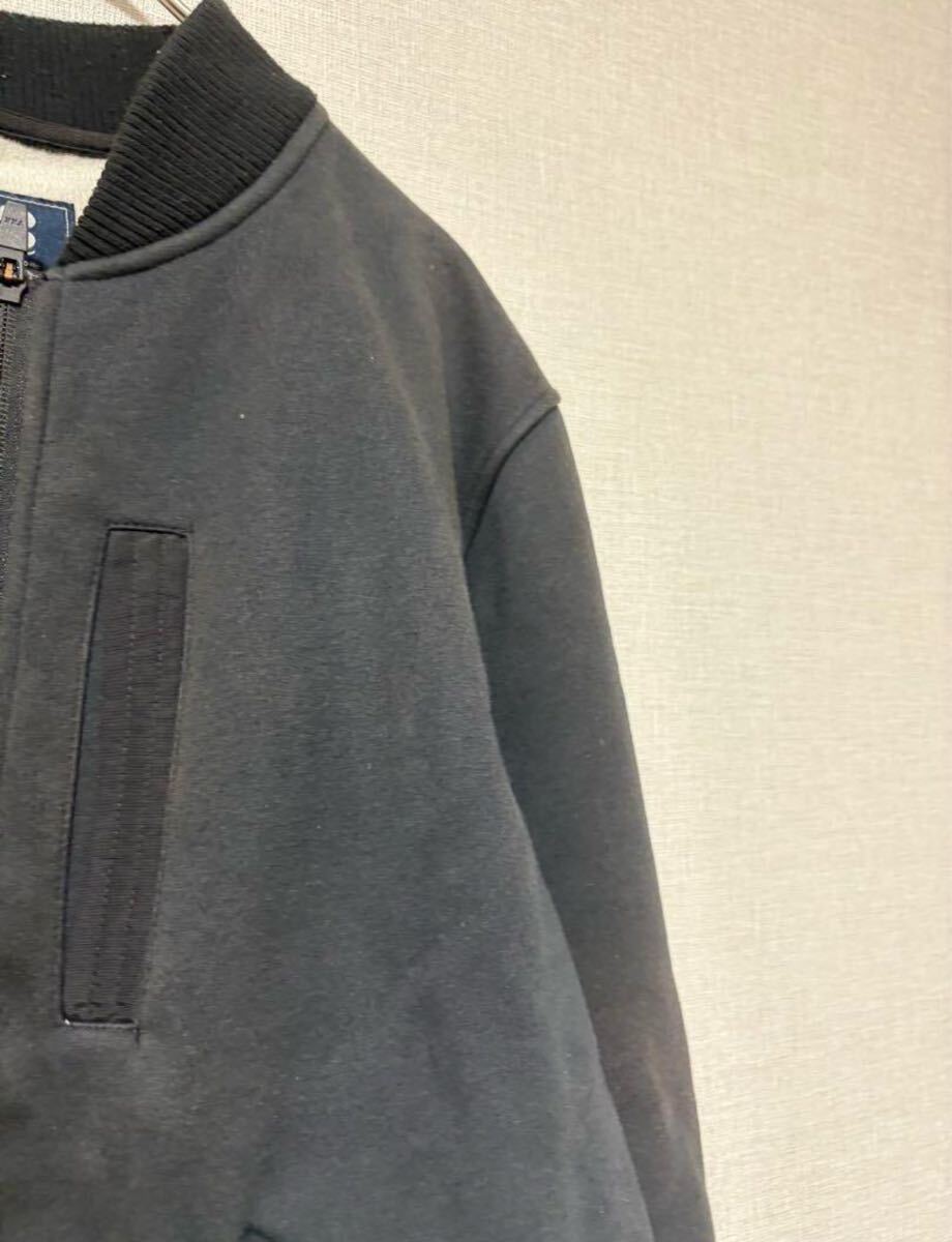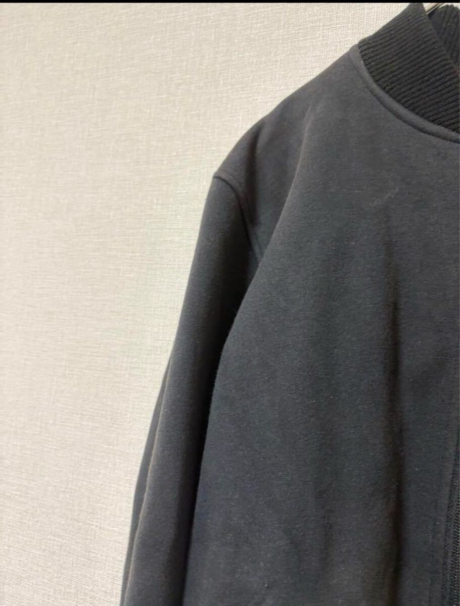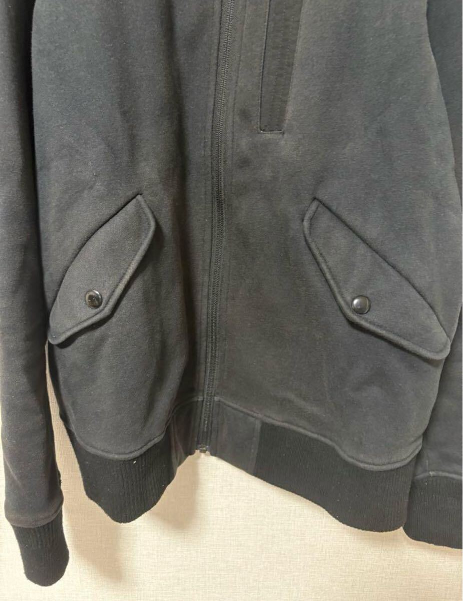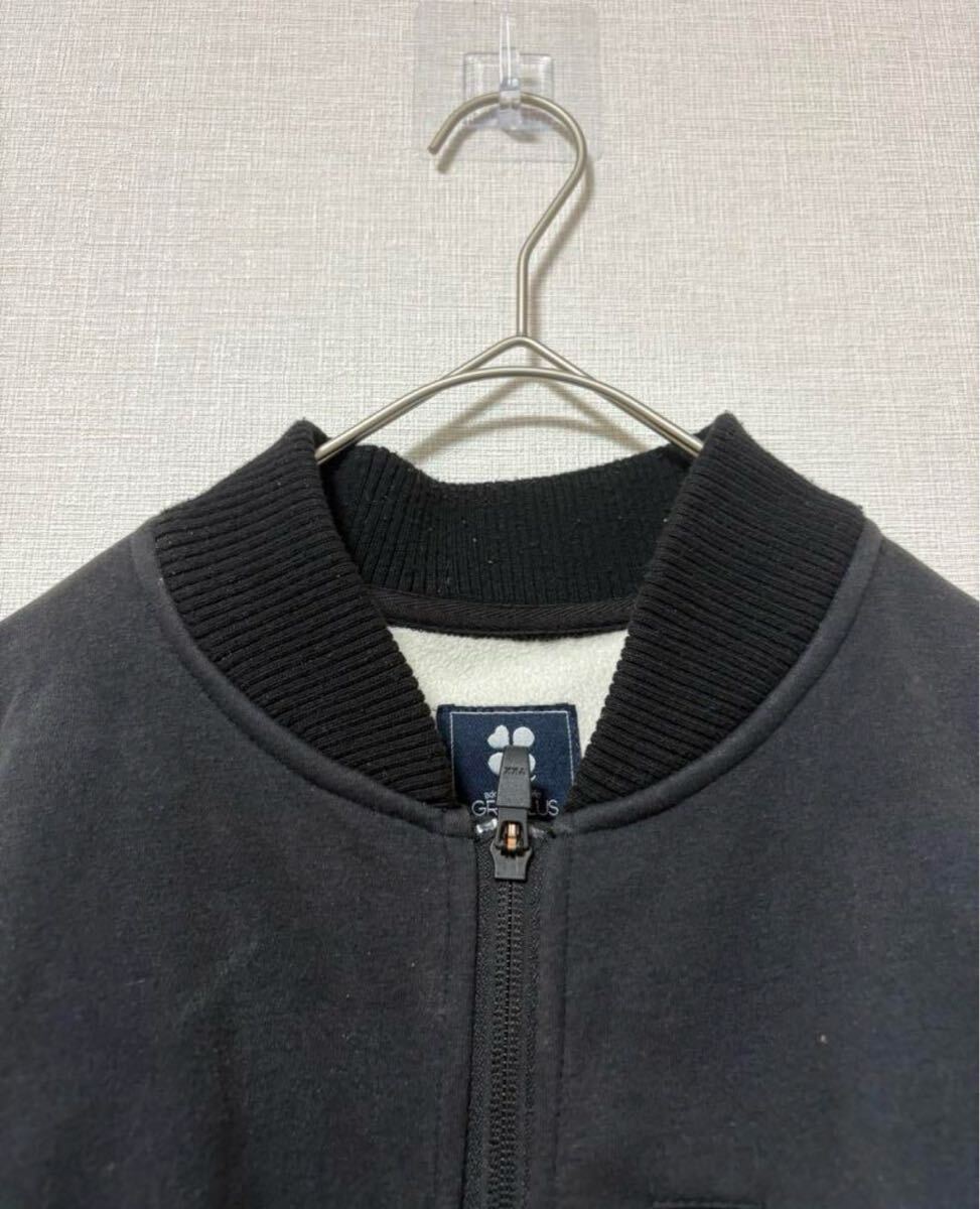ジップアップのブラックジャケット、フリース素材で快適な着心地。