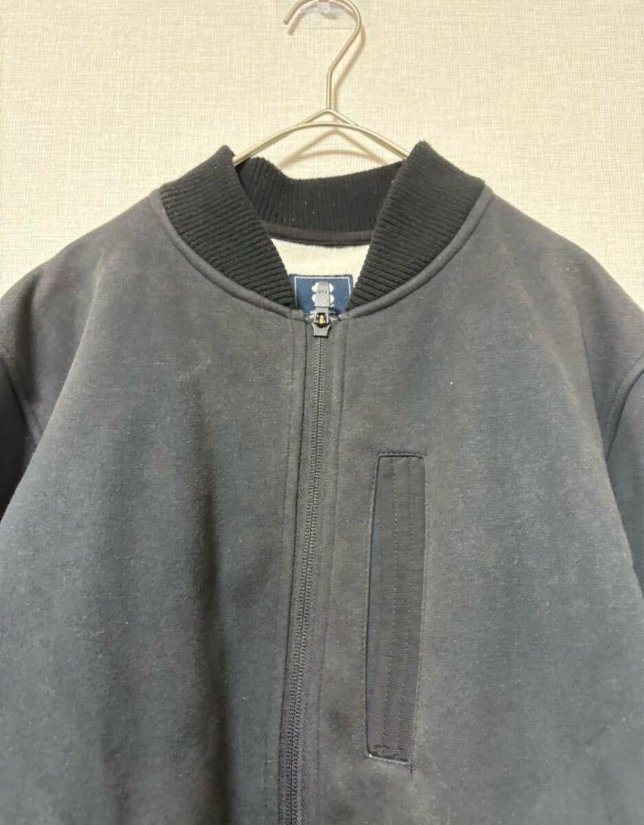 生地は綿ですが、ボンディング加工がしてあって張りがありしわになることはありません。表はスエットのような生地で、裏はフリースのようになっていて風を通さないのでかなり暖かいです。