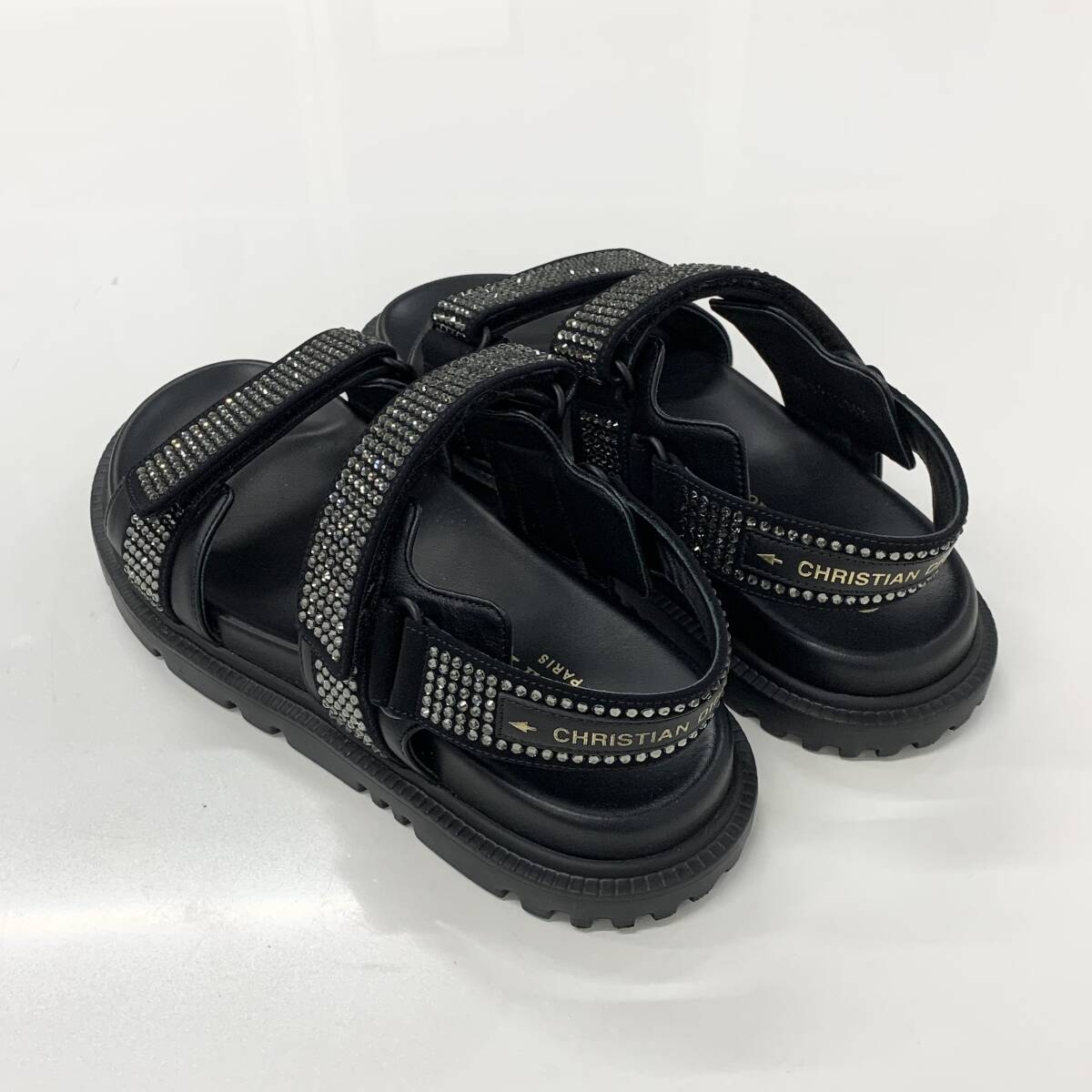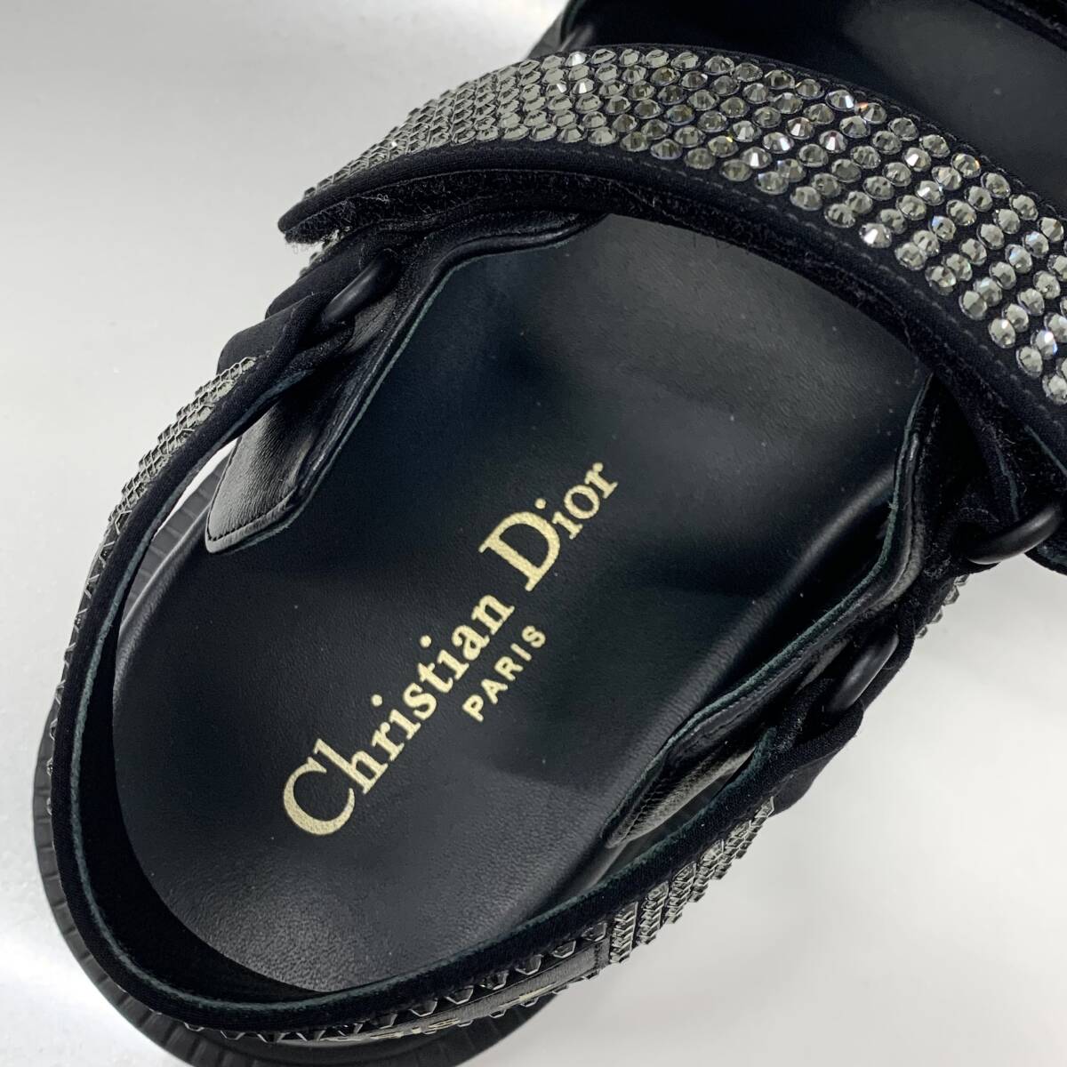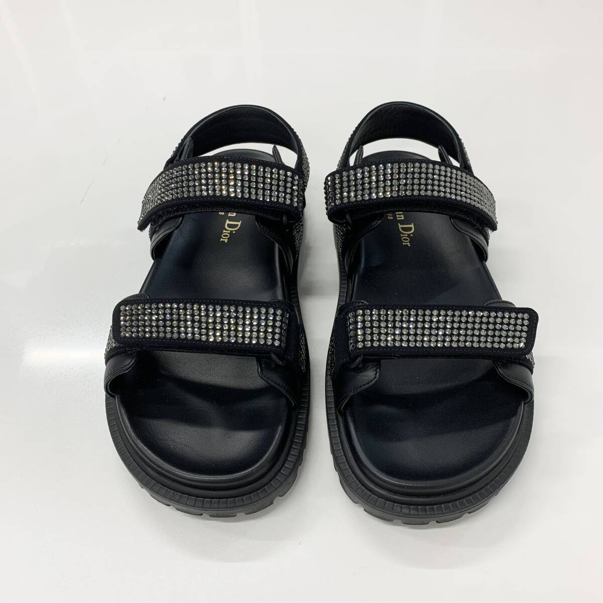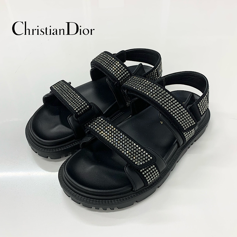 クリスチャンディオール DIORACT ラムスキン ラインストーン ロゴ ベルクロストラップ サンダル ブラック