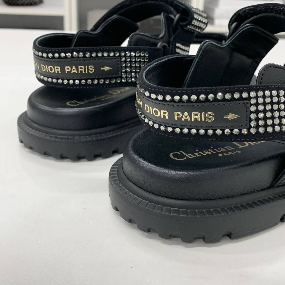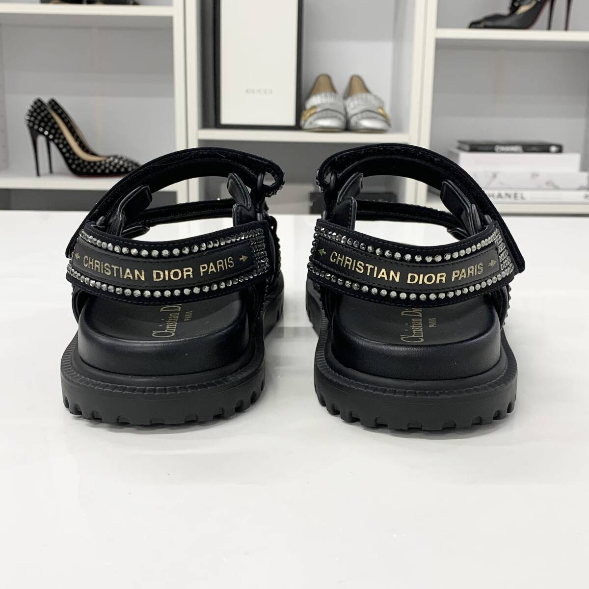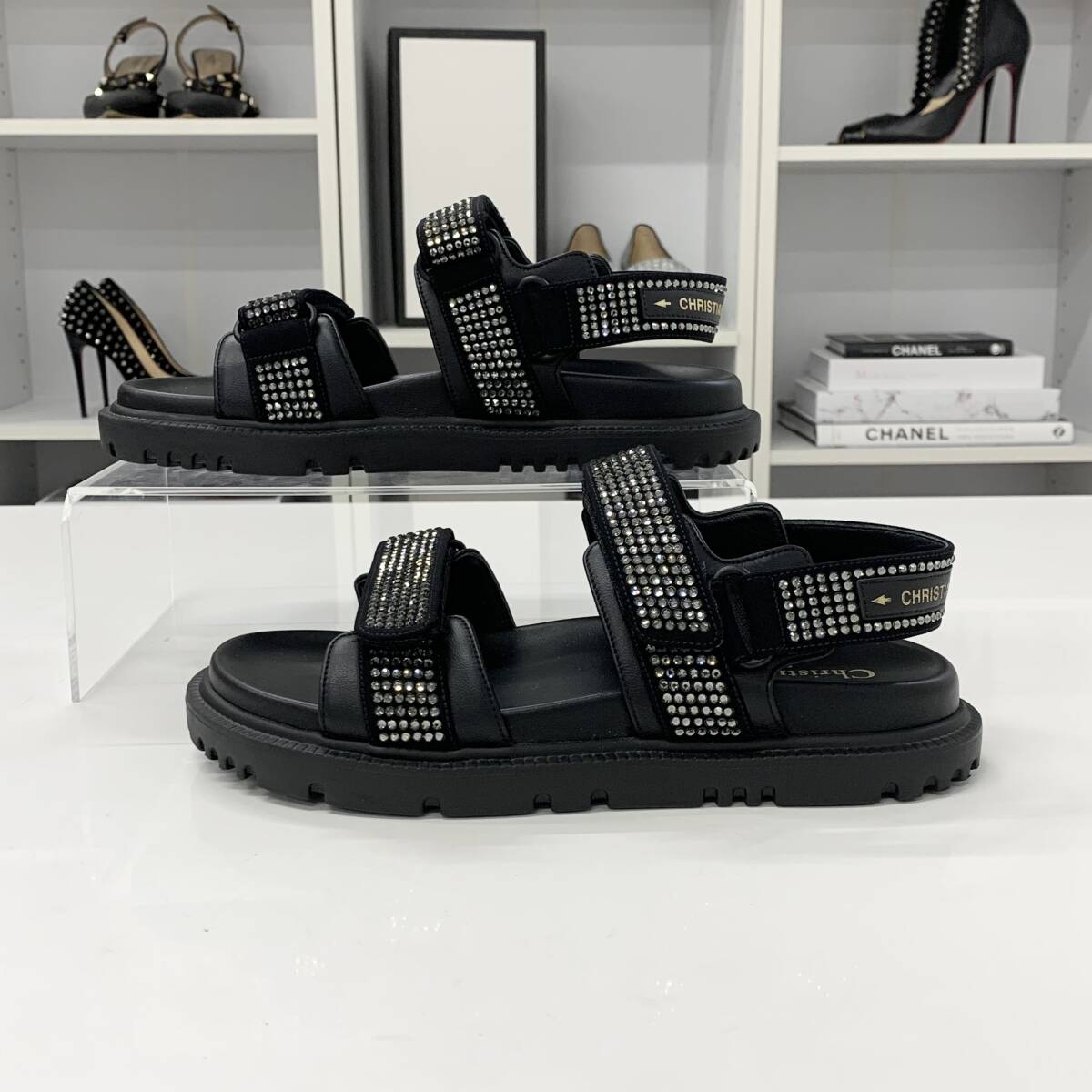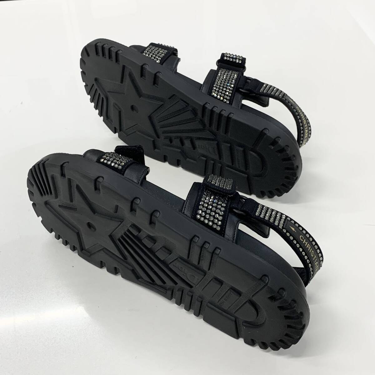 クリスチャンディオール DIORACT ラムスキン ラインストーン ロゴ ベルクロストラップ サンダル ブラック