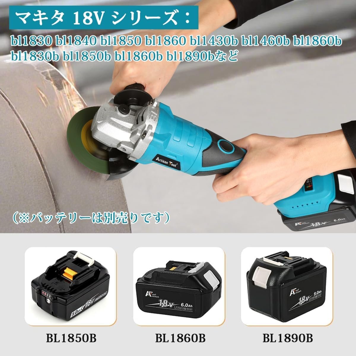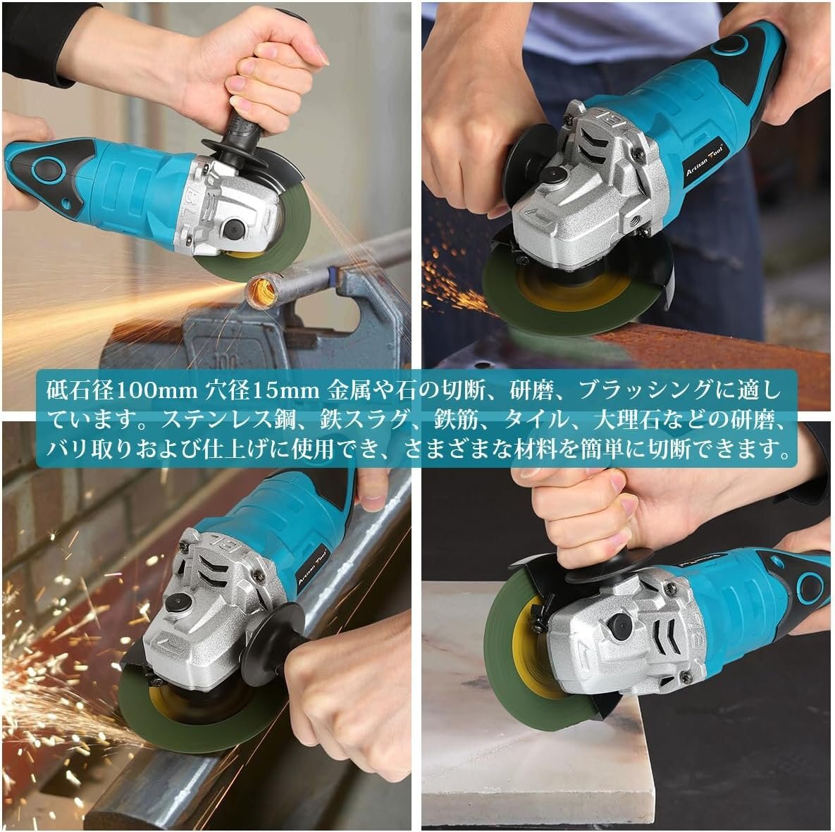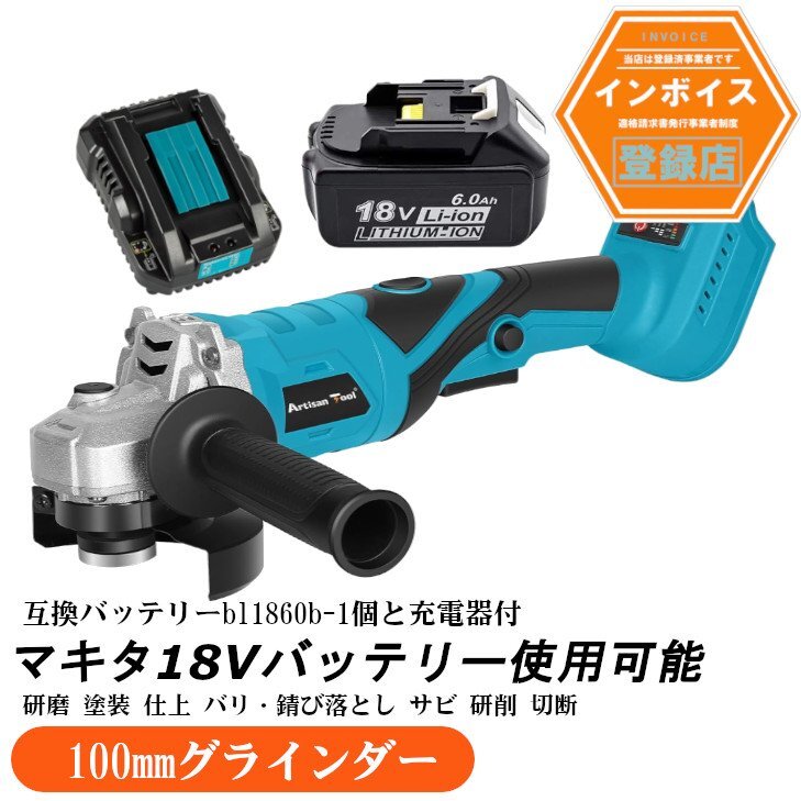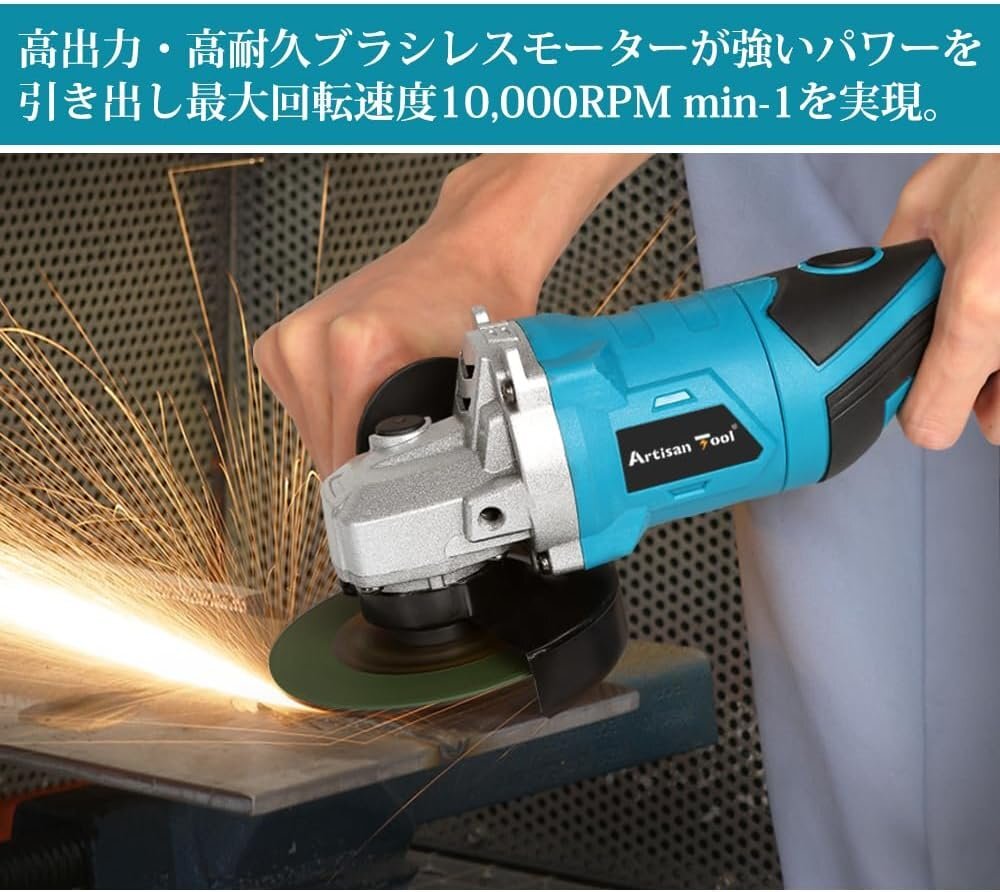 アルチザンツール 充電式グラインダー ATGR01B 研磨 塗装 仕上 バリ・錆び落とし サビ 研削 切断 φ100mm バッテリー1個+充電器