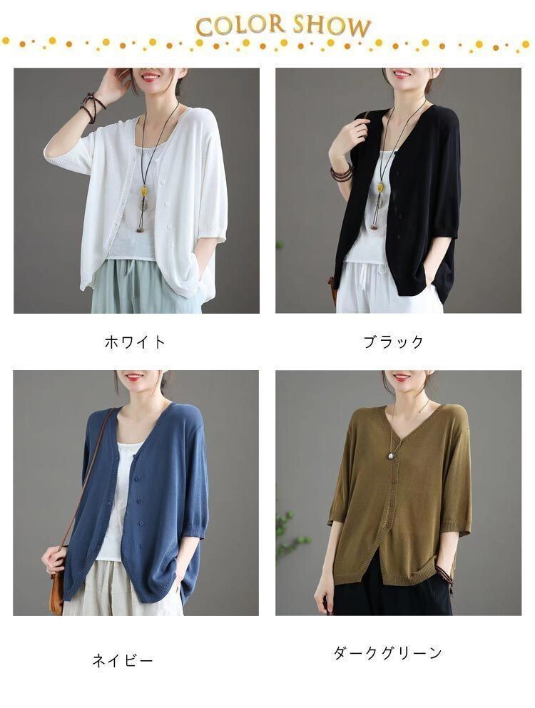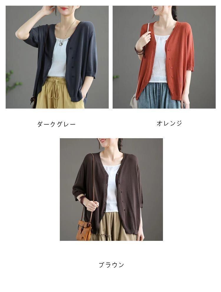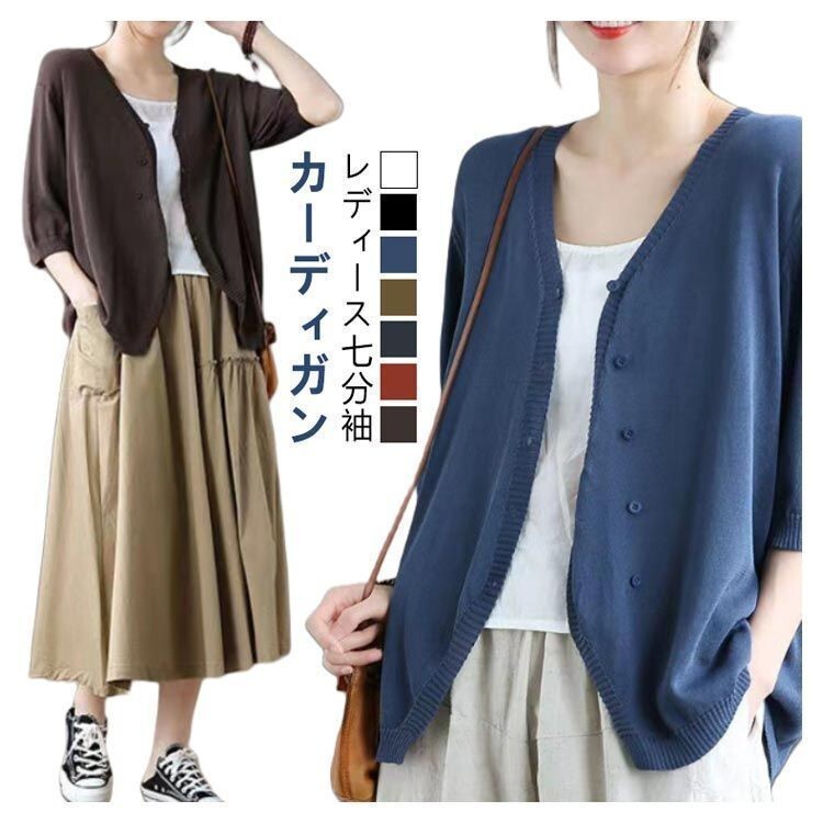 色:ホワイト ブラック ネイビー ダークグリーン ダークグレー オレンジ ブラウン レディース七分袖カーディガン なんにでも合わせられる便利な薄手カーデ。