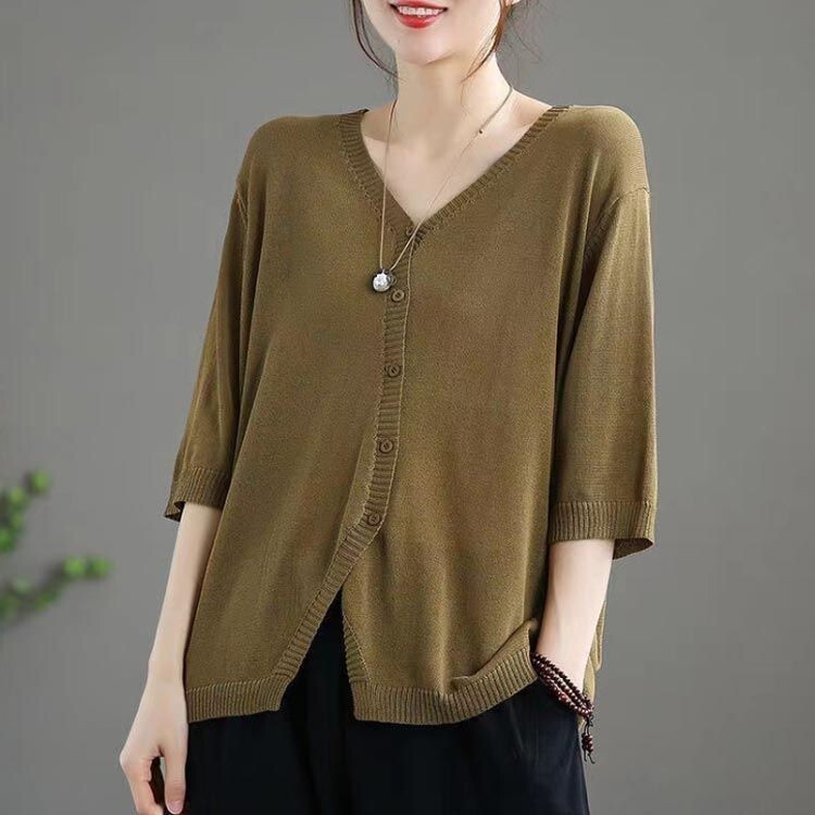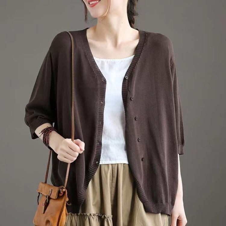 おしゃれ 体型カバー 即購入OK 半袖 ニットカーディガン カーディガン Vネック 着回し ゆったり 重ね着 サマーカーディガン カー