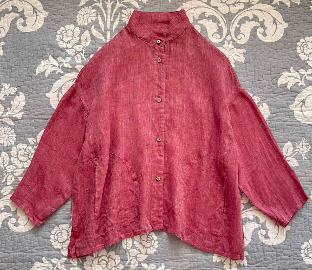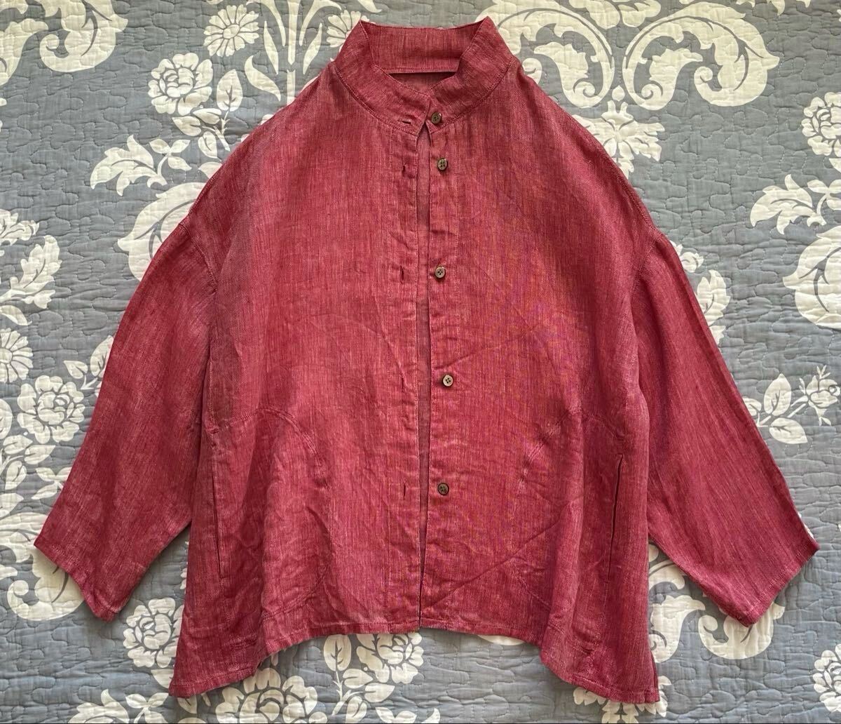 麻のナチュラル感やスタンドカラー、ゆったりシルエットがとても可愛くて上品です♪