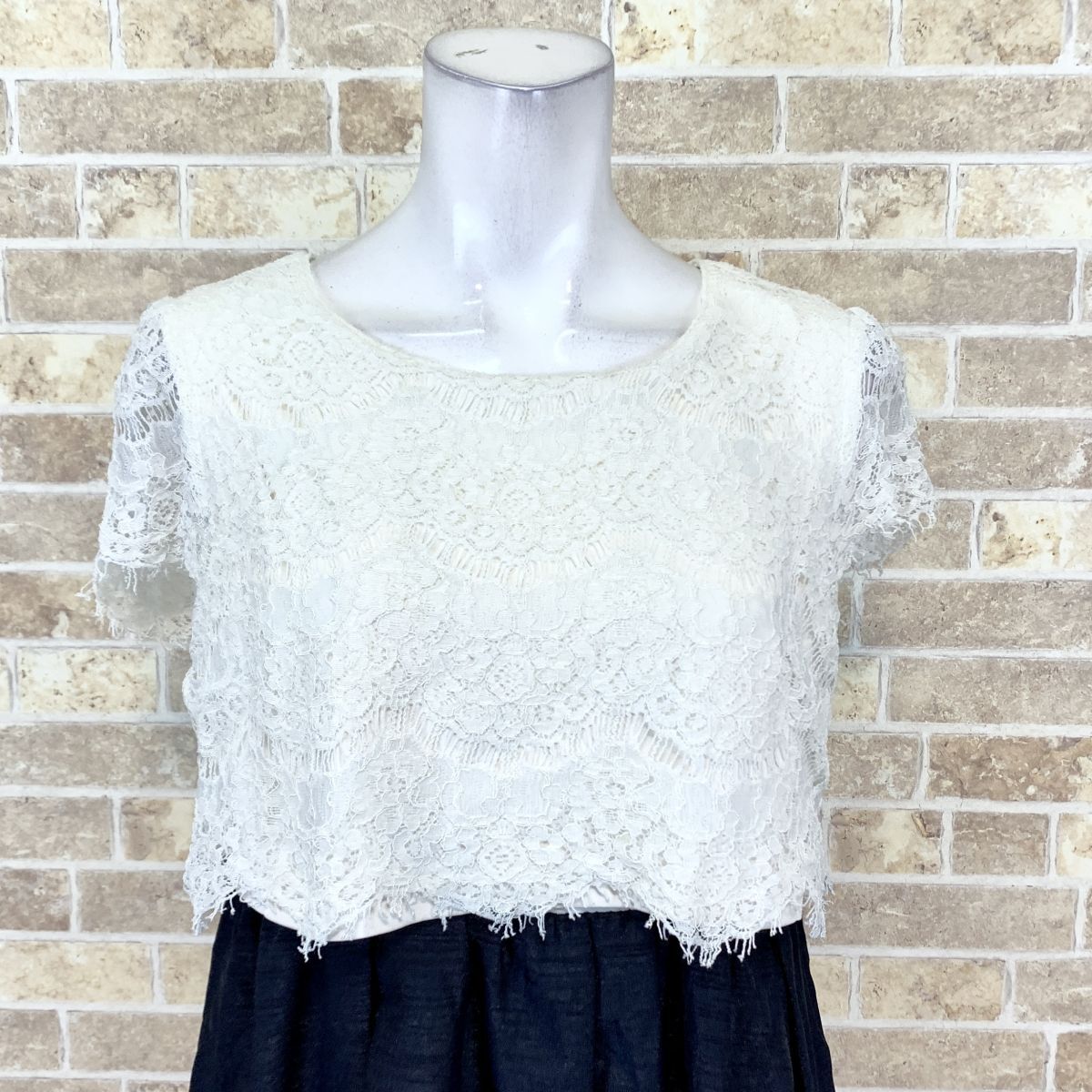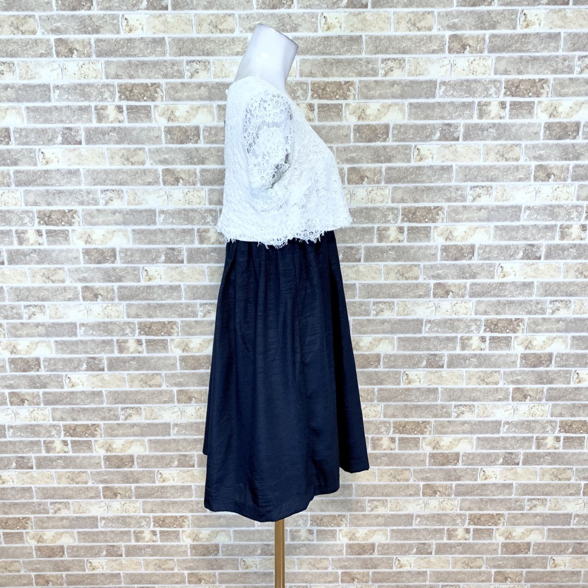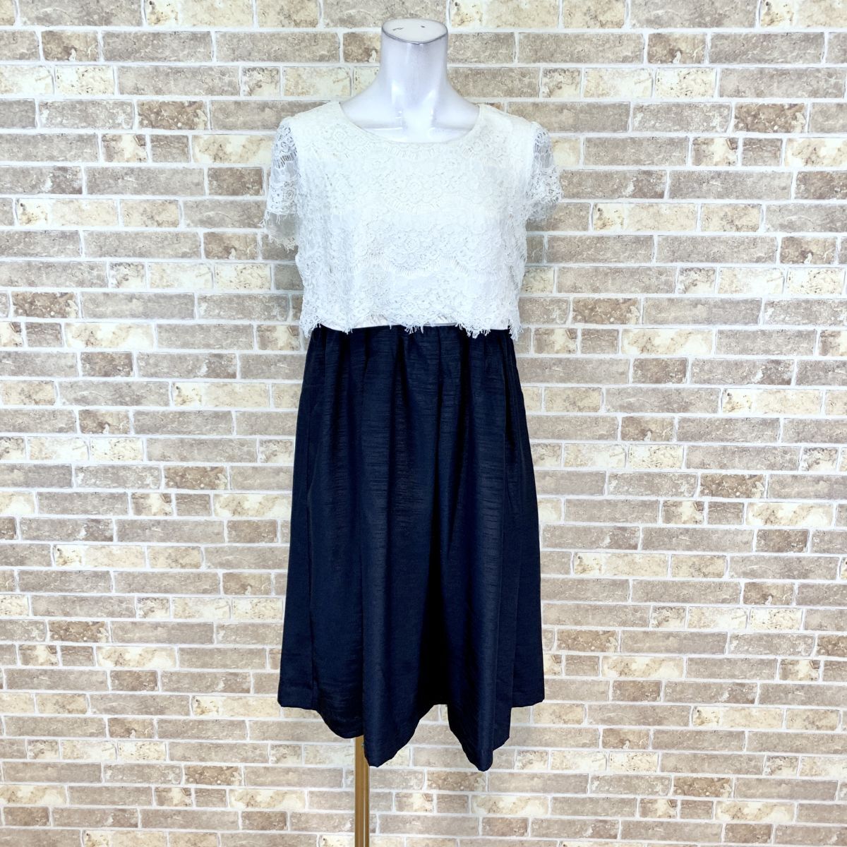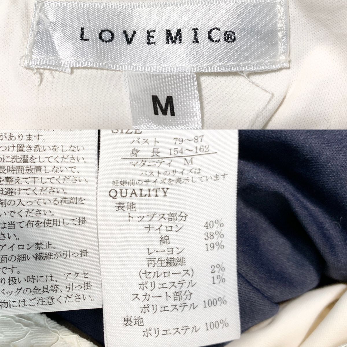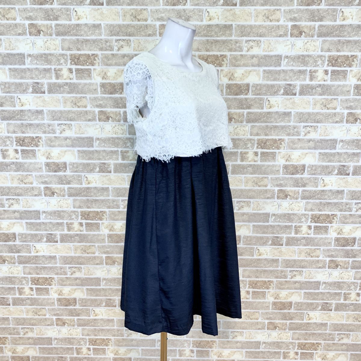 1円 ドレス LOVE MIC ワンピース マタニティ M 白ネイビー カラードレス キャバドレ 発表会 イベント 中古14441