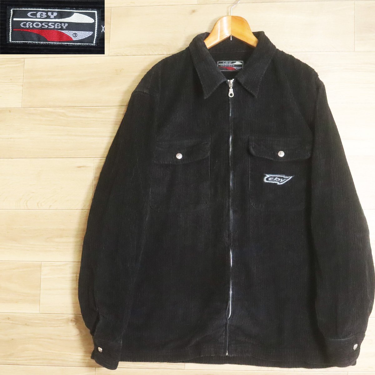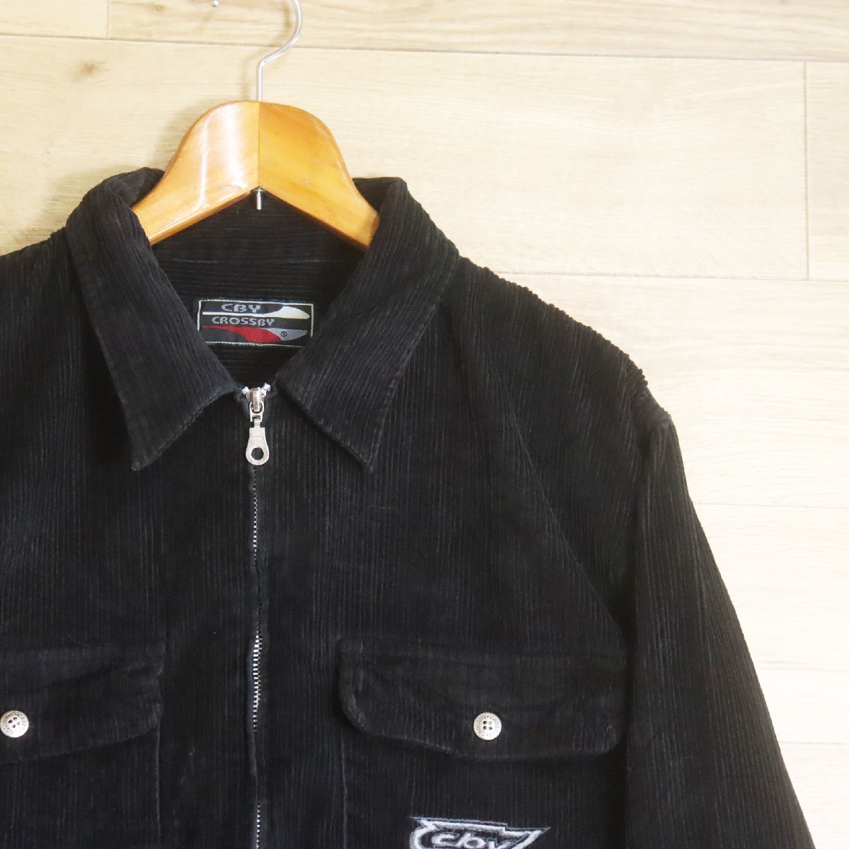 I1S/R8.6-4 CBY CROSSBY コーデュロイジャケット コットン ジップアップ ブルゾン ワンポイント ロゴ刺繍 XL ブラック 古着