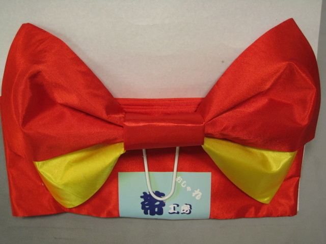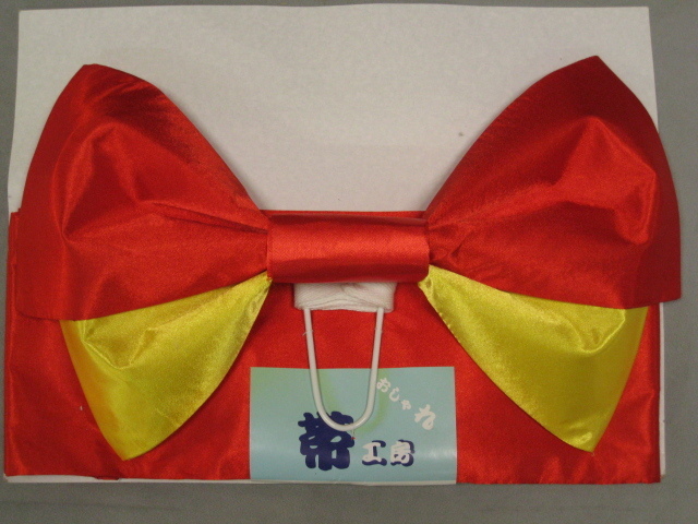 新品 子ども用 ゆかた用 結び帯 赤黄 小