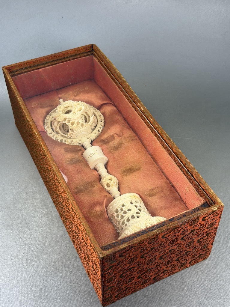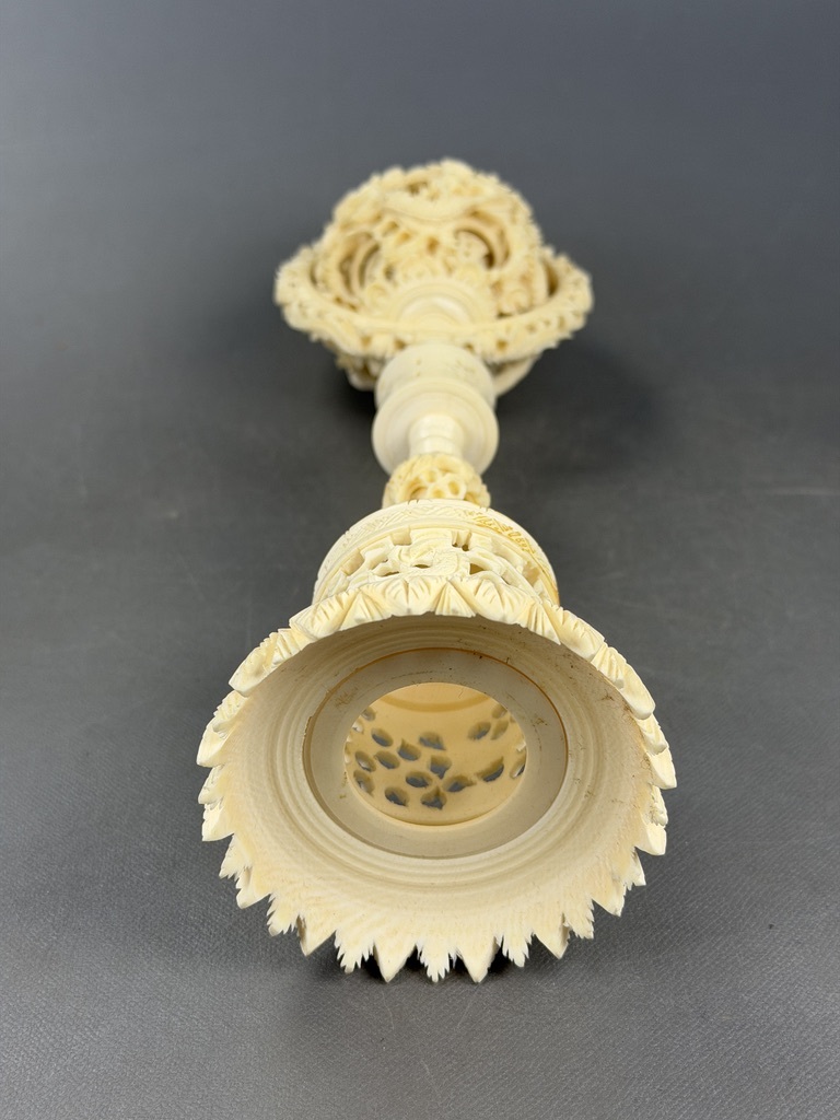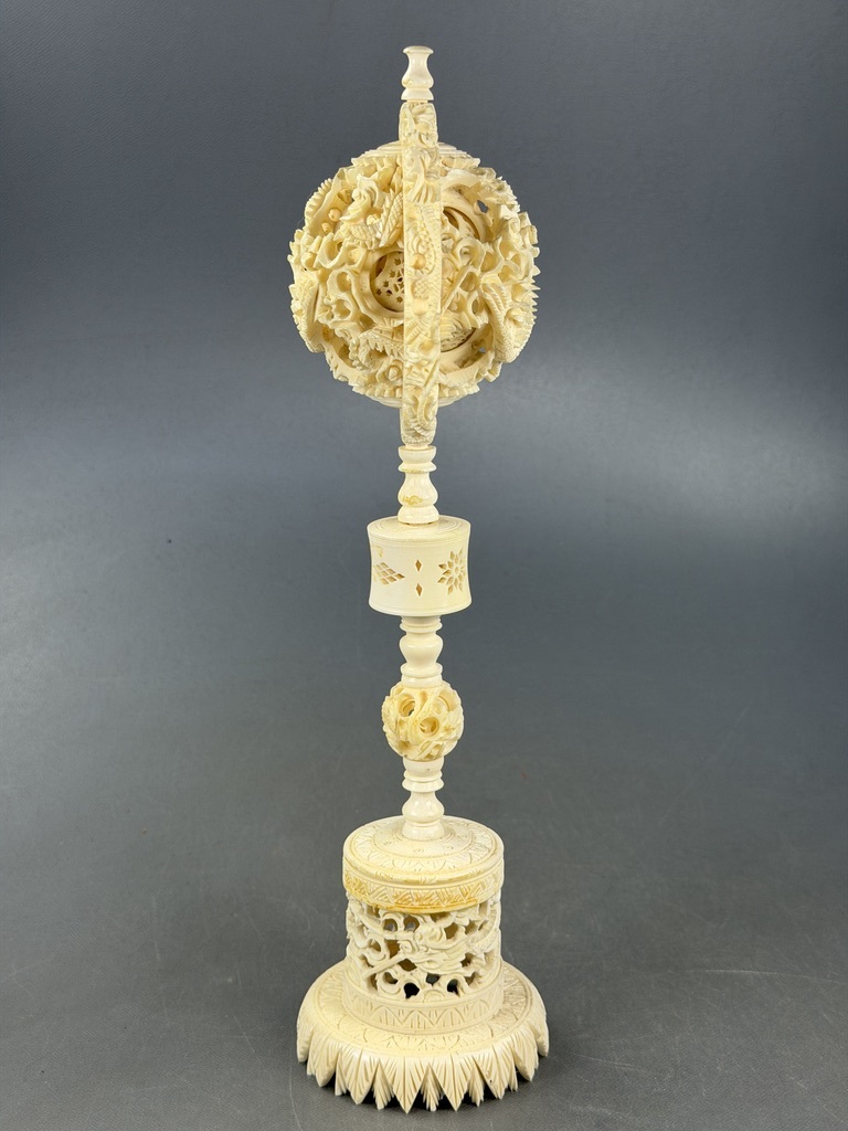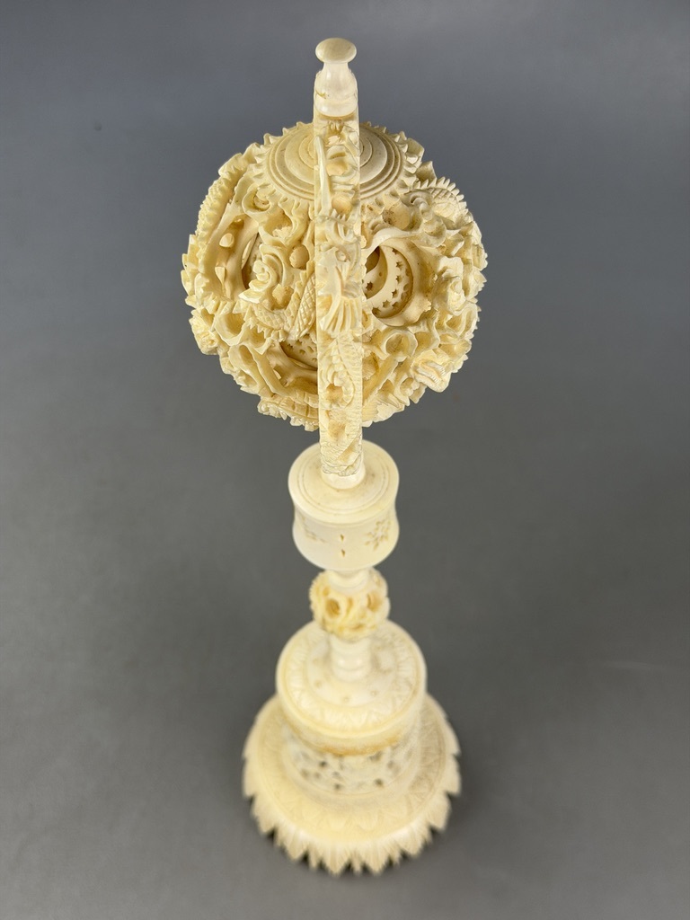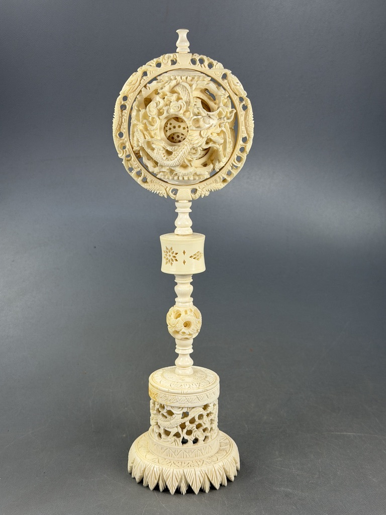 【偲】某有名オークション買入 鯨歯風 天然素材 時代物 雲龍紋天球 置物 骨董品 古美術  重約227.23g   高約29cm   r-890