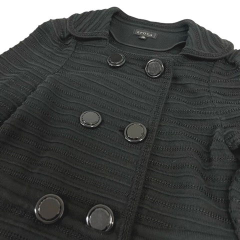 エポカ EPOCA コート ジャケット ニット Aライン 膝丈 長袖 40 黒 ブラック レディース