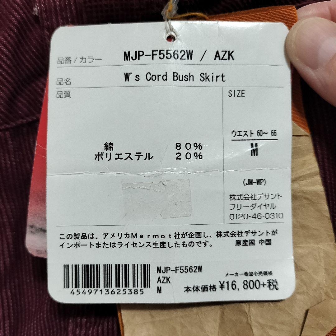 アウトドアブランドMarmotと、デニムやワークウェアで人気のKATO’によるコラボアイテム。太畝コーデュロイ生地を使用したブッシュスカートで、カジュアルながらしっかりとした存在感があります。前後に大きめのフラップポケットを配置し、アウトドアライクなデザインに仕上げられています。ウエスト内側はストライプの別布仕様になっており、細部までこだわりを感じる作り。タウンユースはもちろん、キャンプやアウトドアシーンにもおすすめです。カラーはあずきに近い色でかわいいです